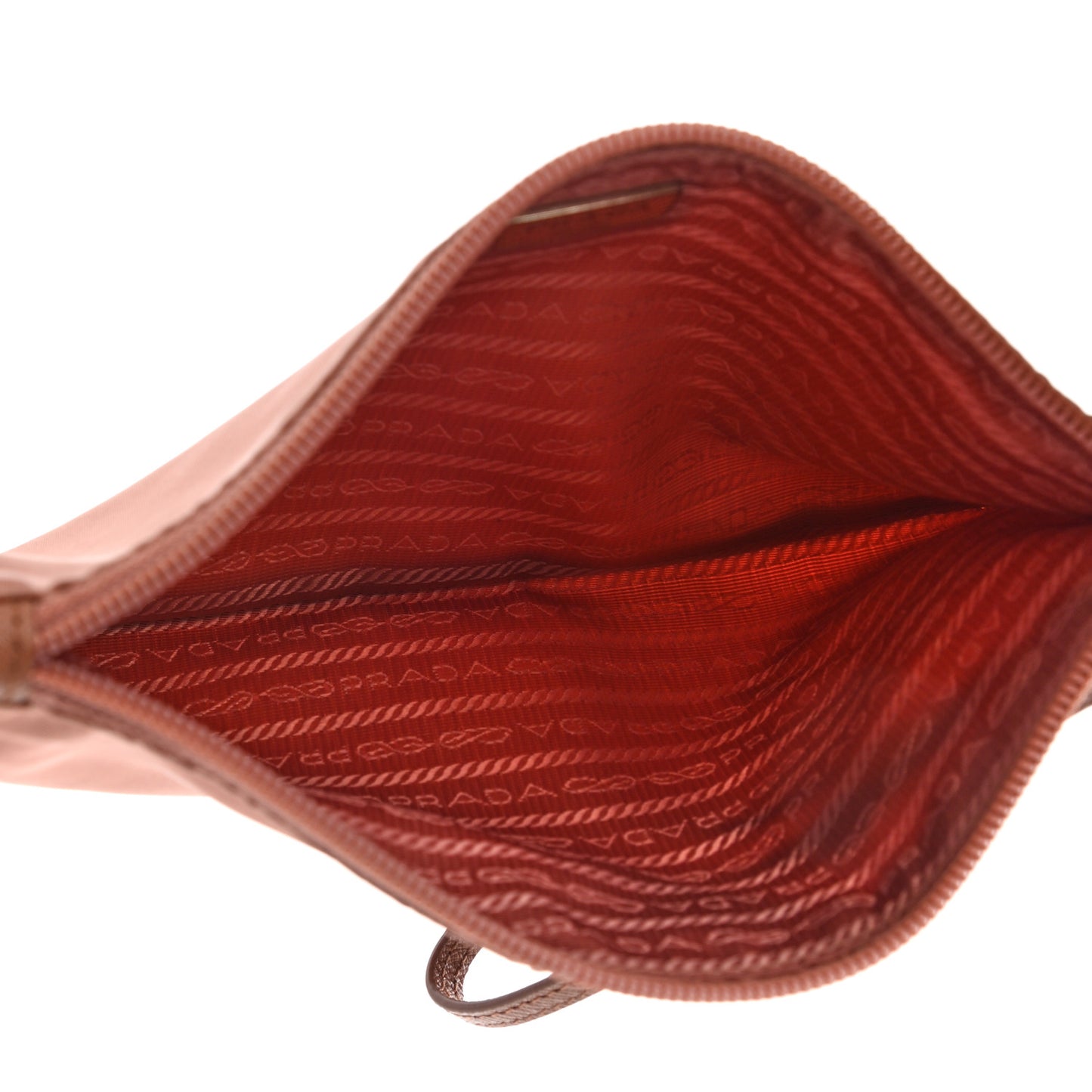 This is an authentic PRADA Tessuto Nylon Saffiano Wristlet in Papaya. This stylish cosmetics pouch is crafted of fine nylon. The bag features an optional saffiano cross-grain leather wristlet strap, a facing Prada logo plate, and a top zipper that opens to a fabric interior.Follow this item for alerts. Prada is a registered trademark of Prada. FASHIONPHILE is not affiliated with Prada.