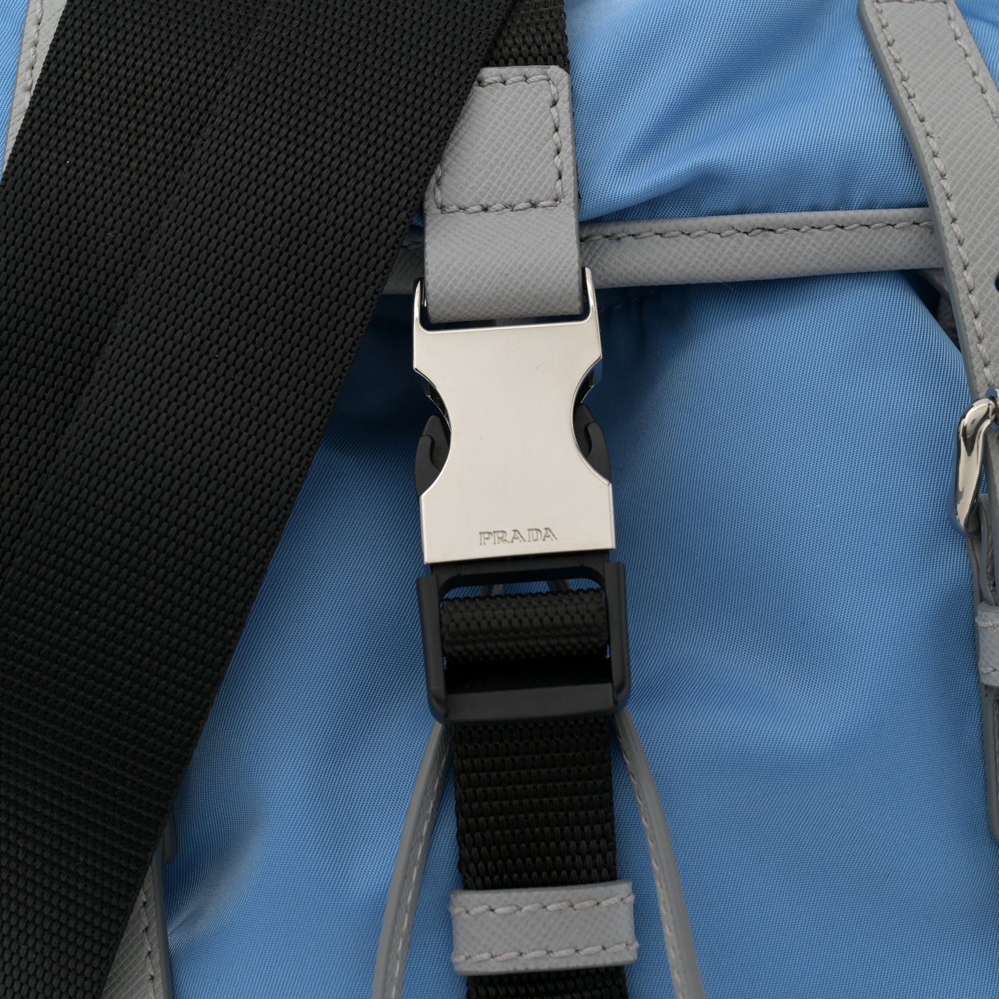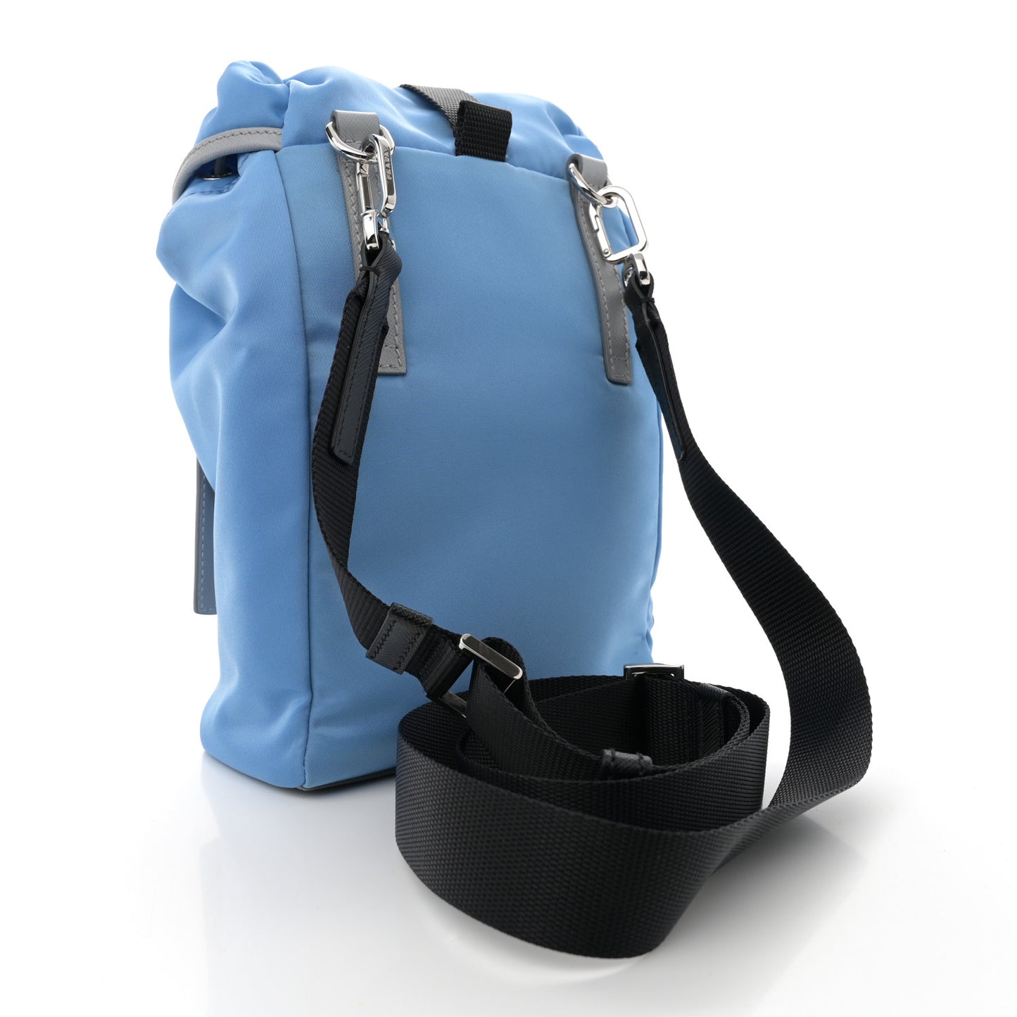 This is an authentic PRADA Tessuto Nylon Saffiano Marsupio Small Double Buckle Crossbody in Pervinca. This backpack is crafted of durable nylon in blue and features a top flap with grey buckles and adjustable shoulder straps. The top opens to a spacious black fabric.Follow this item for alerts. Prada is a registered trademark of Prada. FASHIONPHILE is not affiliated with Prada.