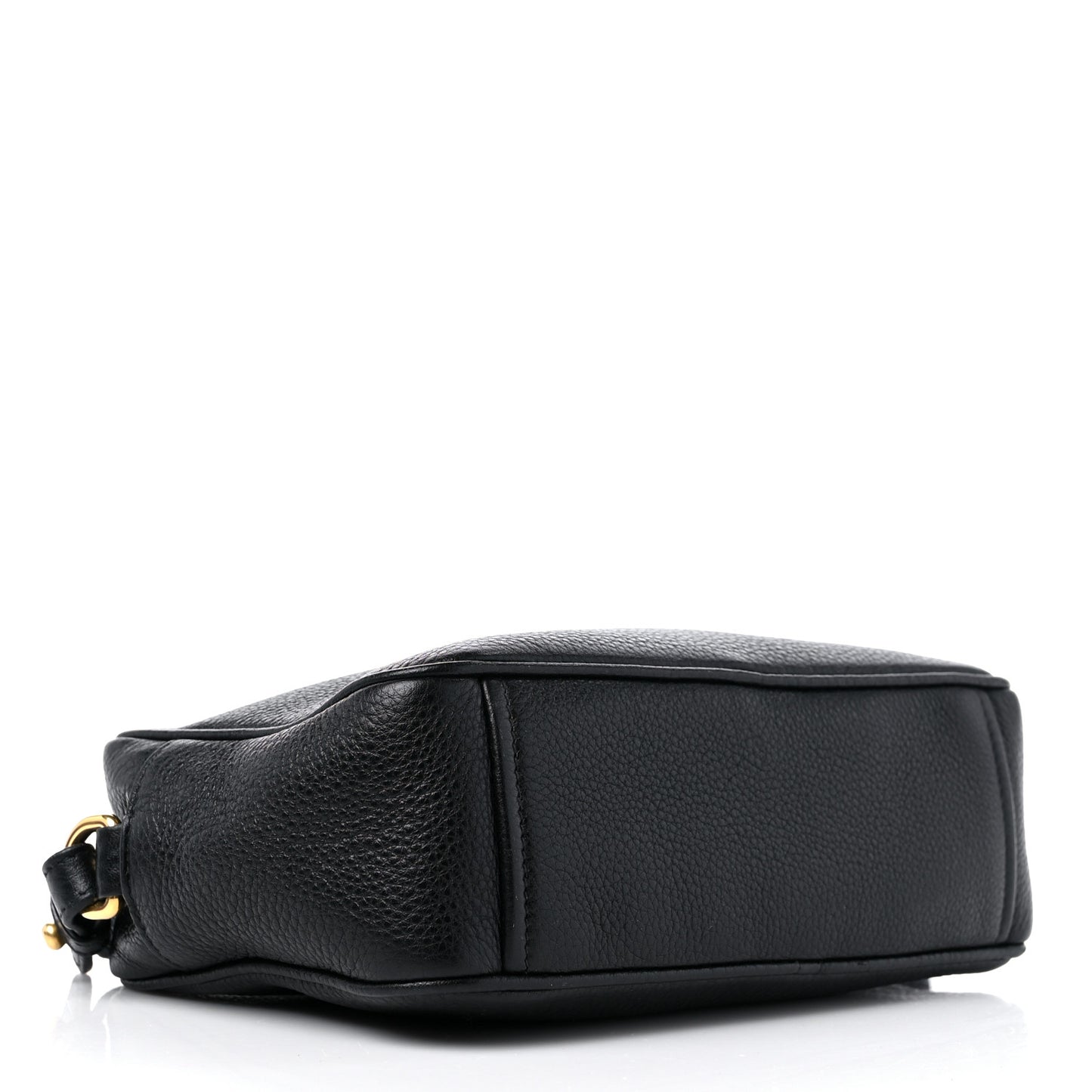 This is an authentic PRADA Vitello Daino Camera Crossbody in Black. This crossbody bag is beautifully crafted of calfskin leather in black. The bag features an adjustable black leather shoulder strap with polished brass hardware. The top zippers each open to a compact black Prada monogrammed fabric interior.Follow this item for alerts. Prada is a registered trademark of Prada. FASHIONPHILE is not affiliated with Prada.