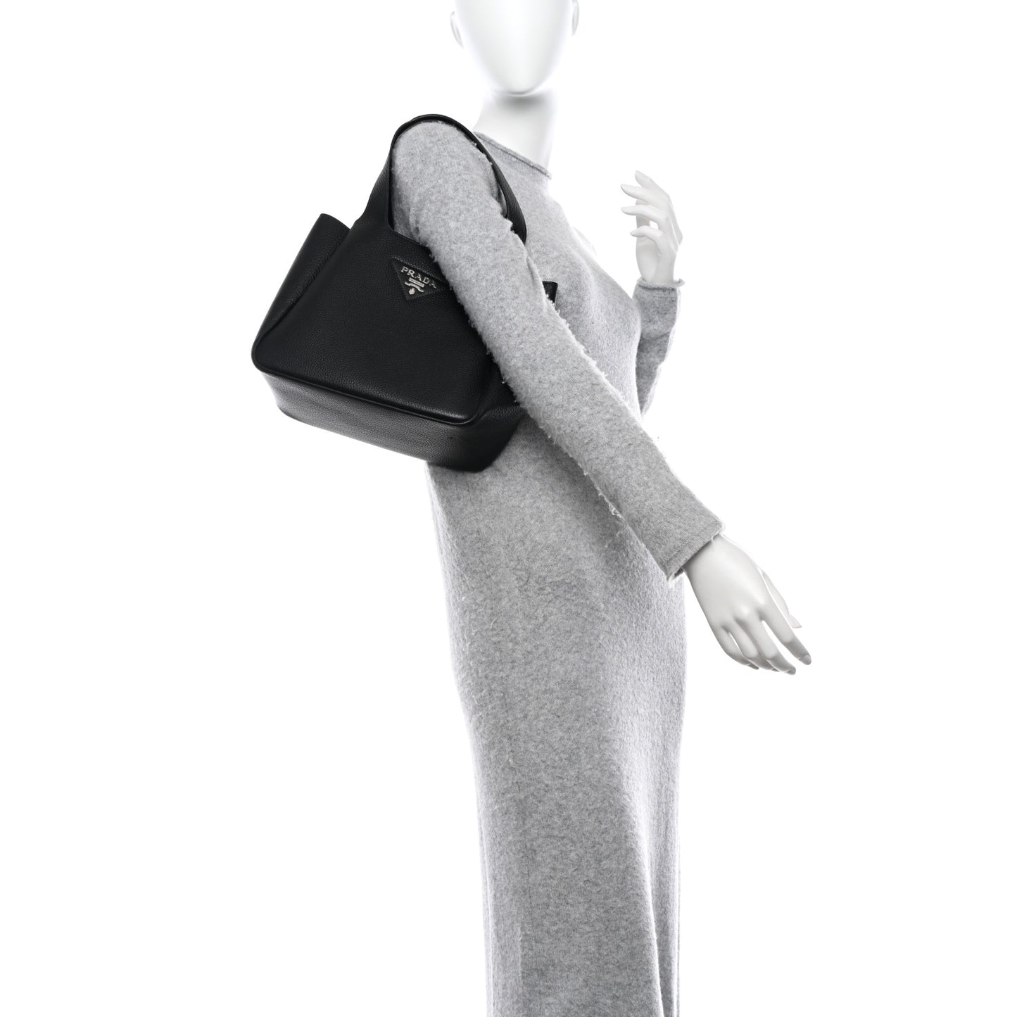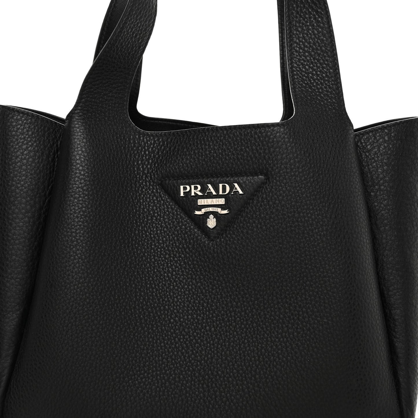 This is an authentic PRADA Vitello Daino Soft Medium Dynamique Tote in Black. This stylish handbag is crafted of luxuriously textured calfskin leather in black. The bag features looping leather handles and the top opens to a partitioned black leather interior.Follow this item for alerts. Prada is a registered trademark of Prada. FASHIONPHILE is not affiliated with Prada.