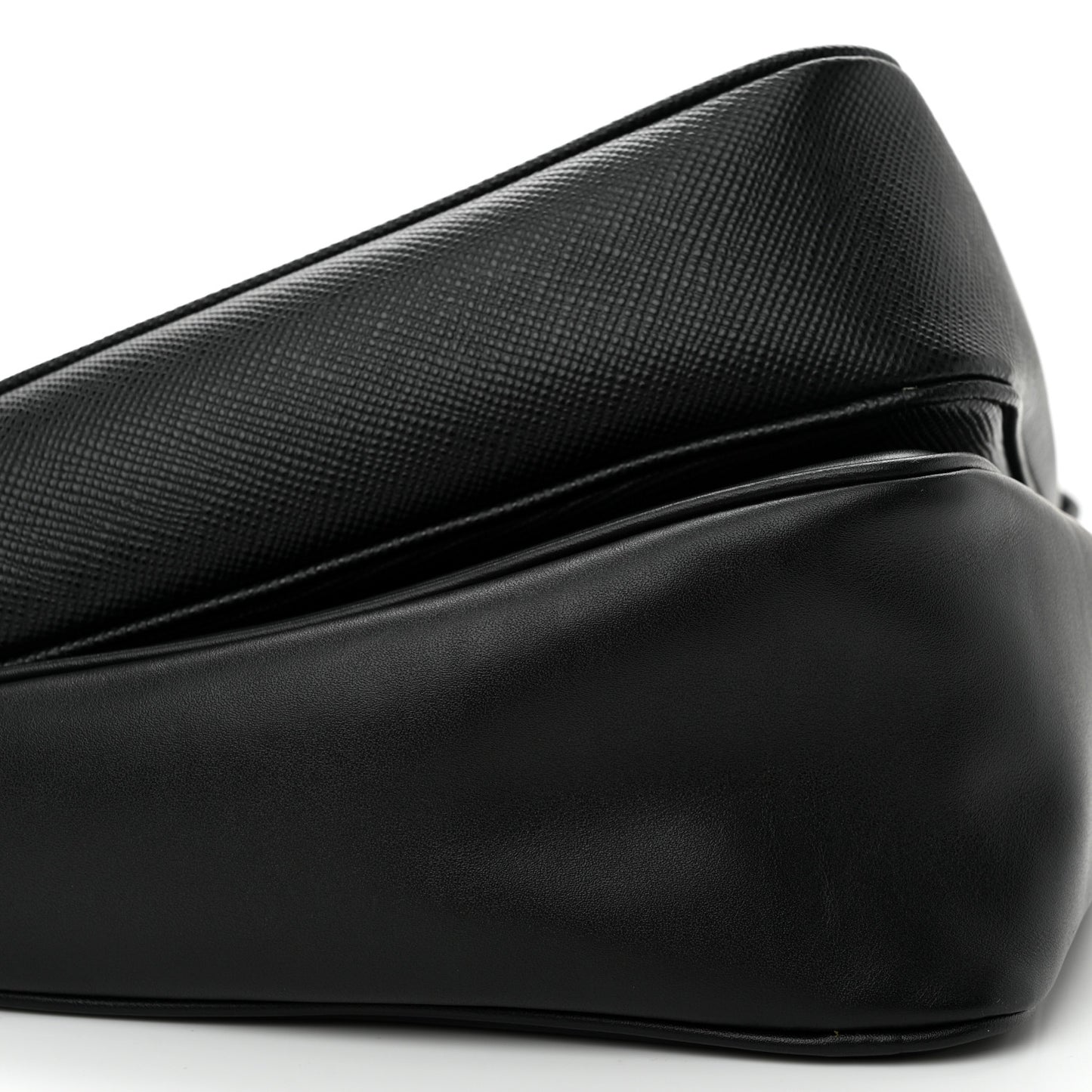Vitello Saffiano Cuir Double Triangle Shoulder Bag Black