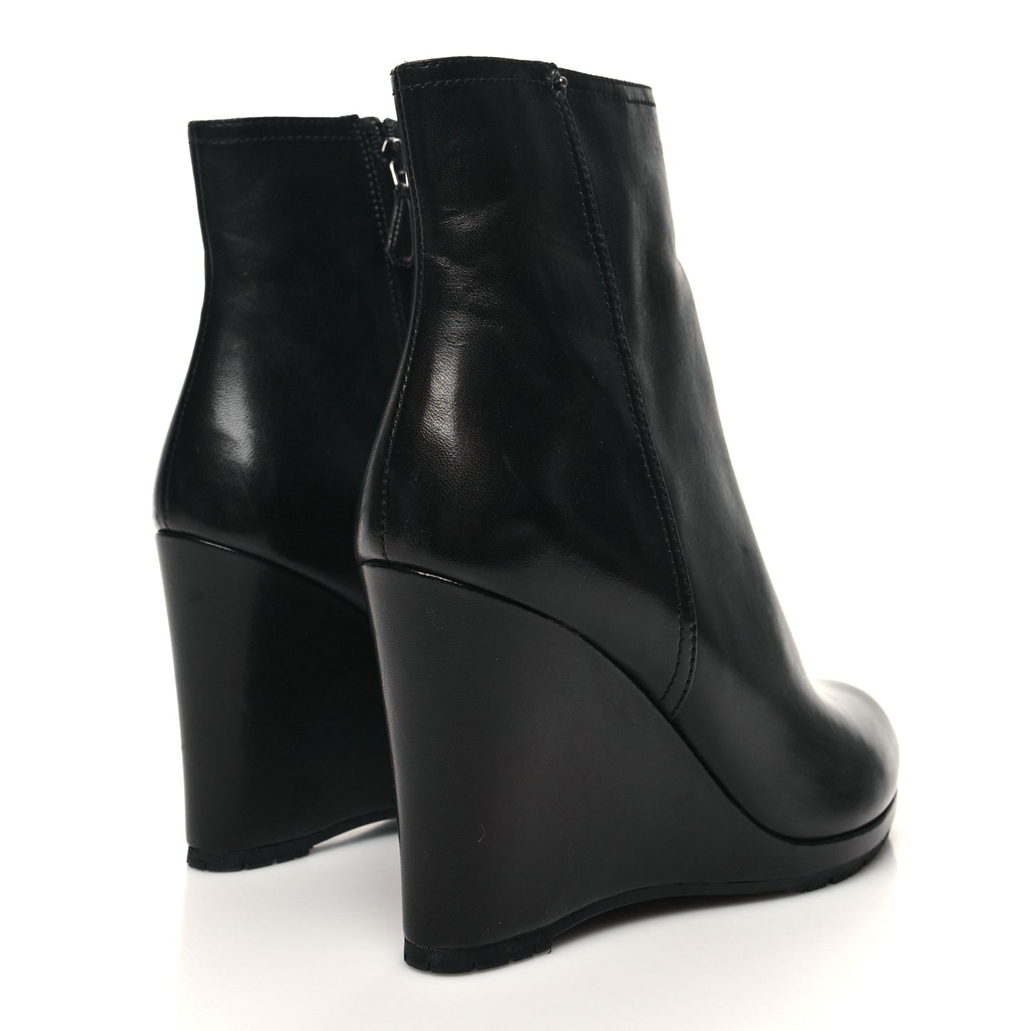 Prada/ Accessories/ Shoes /Prada Vitello Wedge Ankle Boots 39.5 Black