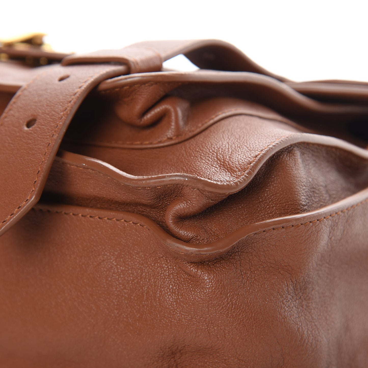 This is an authentic PROENZA SCHOULER Lambskin Medium PS1 Satchel in Saddle. This stylish shoulder bag is crafted from lovely lambskin leather in brown. The shoulder bag features the signature Proenza Schouler style exterior; with belts and gold buckles, a leather strap top handle and an optional shoulder strap all detailed with aged polished brass hardware. The envelope style front flap opens with a switch lock to the main compartment with a dark gray Proenza patterned fabric interior and an additional storage compartment with zipper pockets.Follow this item for alerts. Proenza Schouler is a registered trademark of Proenza Schouler. FASHIONPHILE is not affiliated with Proenza Schouler.