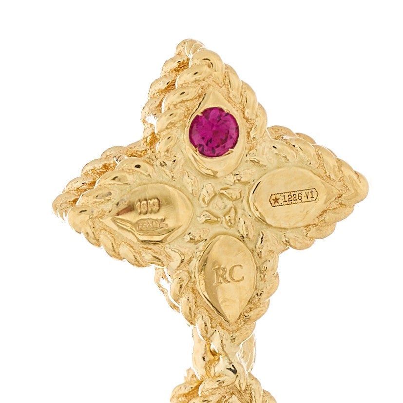 This is an authentic ROBERTO COIN 18K Yellow White Gold Diamond Princess Flower Drop Clip On Earrings. The earrings are crafted of 18 karat yellow and white gold, and feature mobile floral cluster motif drops accented with .36 total carat weight of diamonds along with hidden synthetic rubies, and clip-on backings for pierced and non-pierced ears.Follow this item for alerts. Roberto Coin is a registered trademark of Roberto Coin. FASHIONPHILE is not affiliated with Roberto Coin.