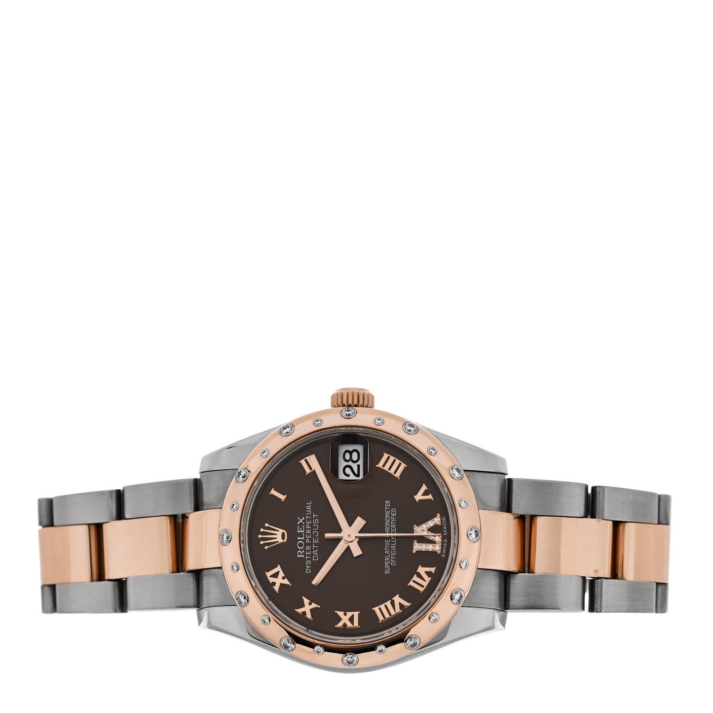Stainless Steel 18K Everose Gold Diamond 31mm Oyster Perpetual Datejust Watch Chocolate Roman 178341