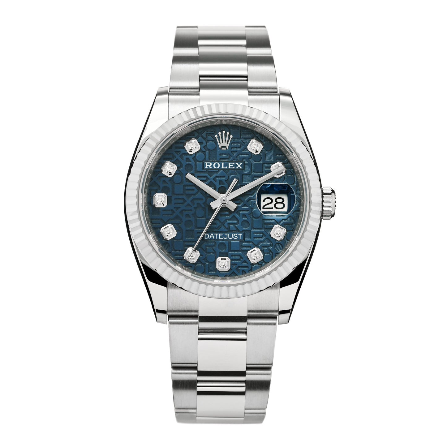 Stainless Steel 18K White Gold Diamond 36mm Oyster Perpetual Datejust Watch Blue Jubilee 126234