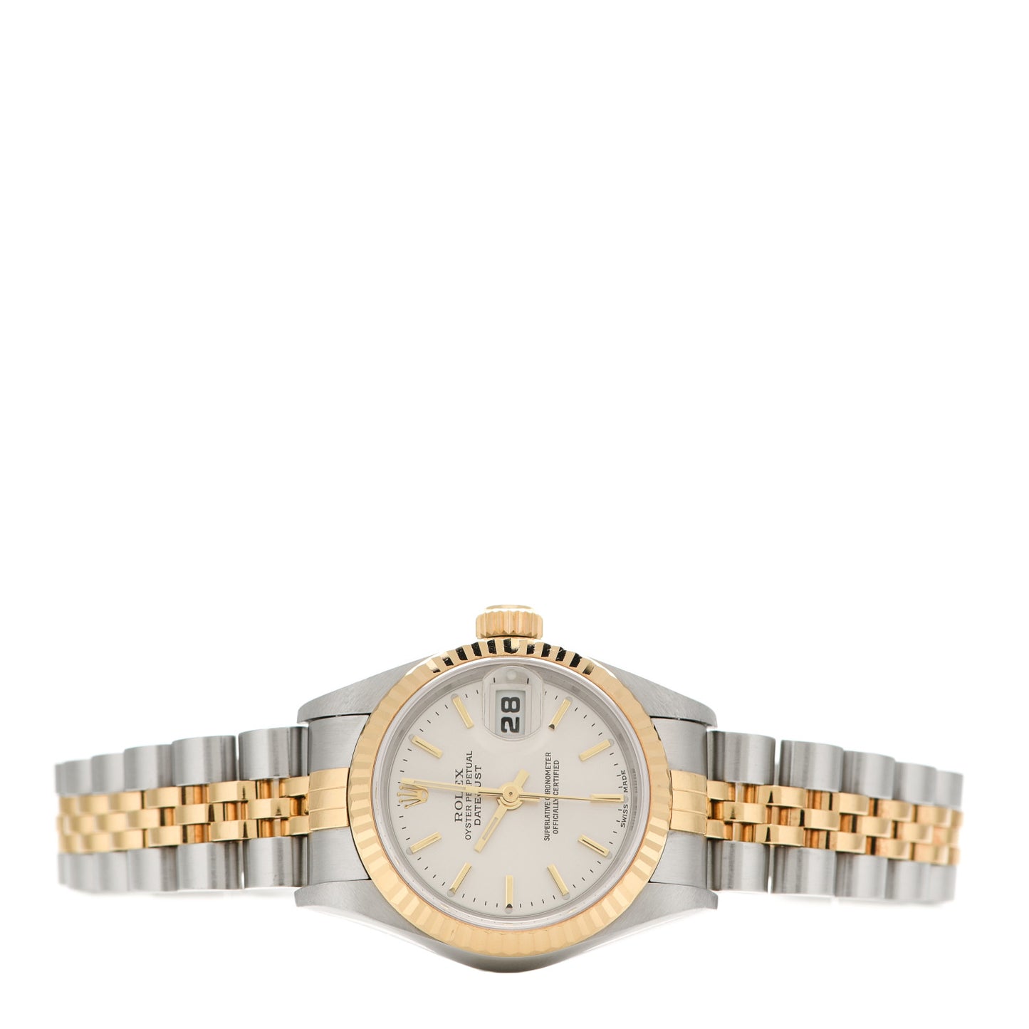 This is an authentic ROLEX Stainless Steel 18K Yellow Gold 26mm Oyster Perpetual Datejust Watch Silver 79173. The watch is crafted of stainless steel and 18 karat yellow gold, and features a silver dial with gold hour markers, magnified date display, two-tone jubilee bracelet, and an automatic movement.Follow this item for alerts. Rolex is a registered trademark of Rolex. FASHIONPHILE is not affiliated with Rolex.