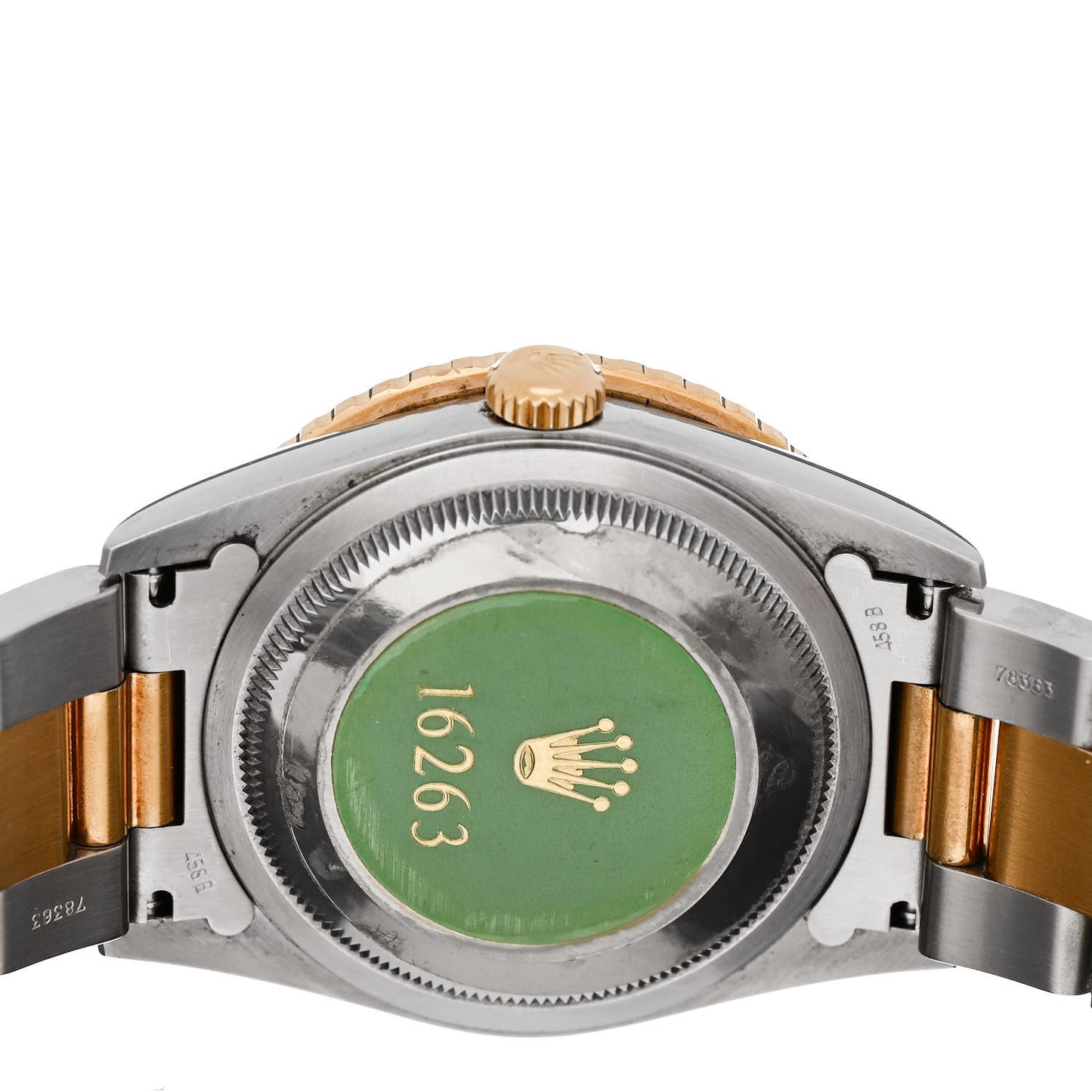 This is an authentic ROLEX Stainless Steel 18K Yellow Gold 36mm Oyster Perpetual "Thunderbird" Datejust Watch Champagne Tapestry 16263. The watch is crafted of stainless steel and 18 karat yellow gold, and features a champagne dial, gold hands and hour markers, date display, sapphire crystal, rotating bezel, two-tone jubilee bracelet, and an automatic movement.Follow this item for alerts. Rolex is a registered trademark of Rolex. FASHIONPHILE is not affiliated with Rolex.