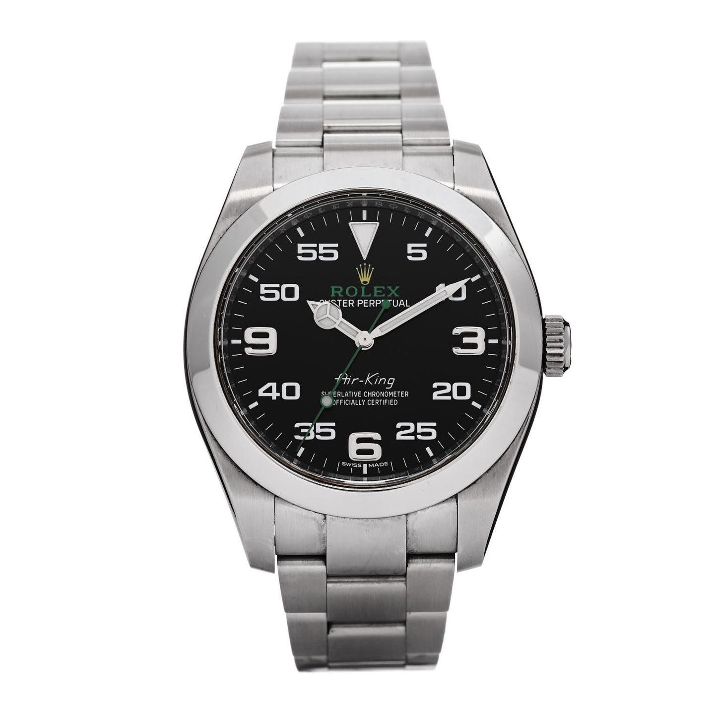 This is an authentic ROLEX Stainless Steel 40mm Air-King Oyster Perpetual Watch Black 116900. This watch is crafted of stainless steel and features a black dial, luminous hands, steel oyster bracelet, and an automatic movement.Follow this item for alerts. Rolex is a registered trademark of Rolex. FASHIONPHILE is not affiliated with Rolex.