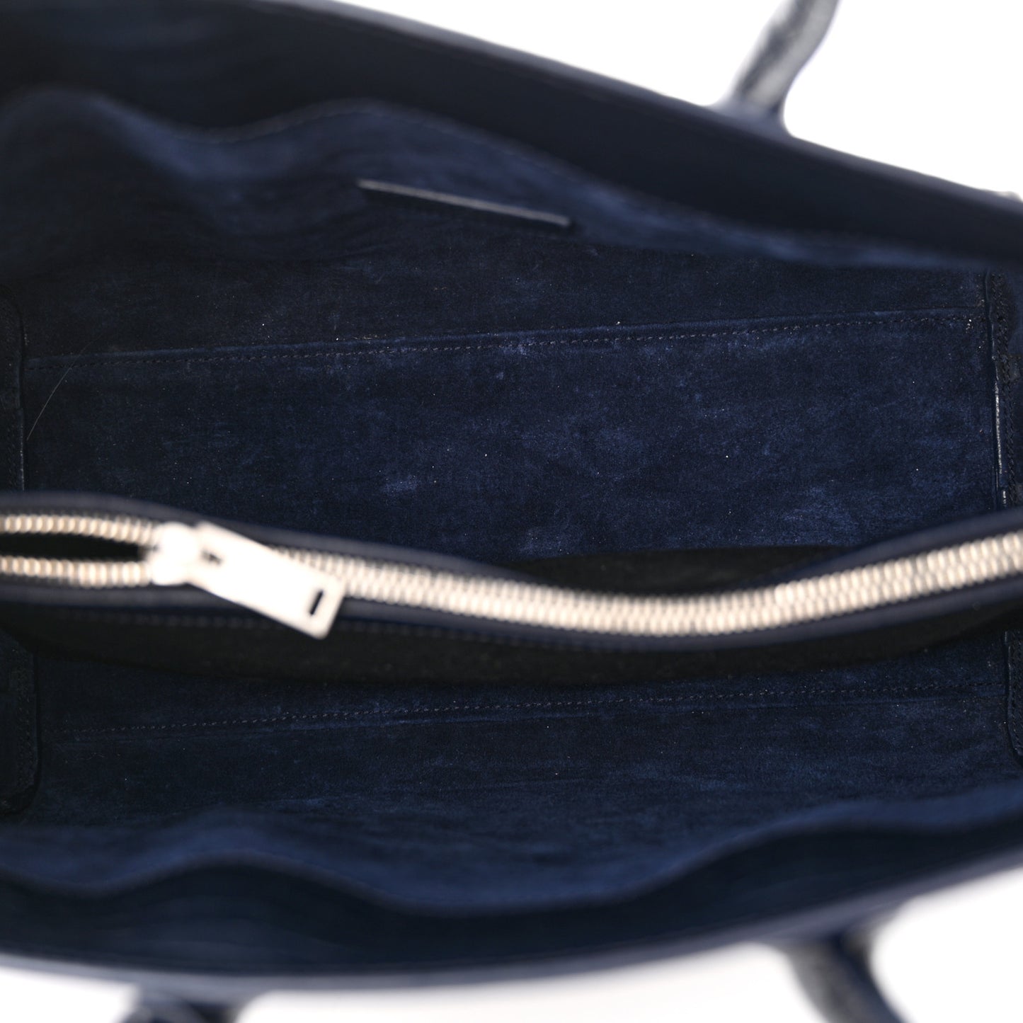 This is an authentic SAINT LAURENT Calfskin Crocodile Embossed Small Supple Sac de Jour in Navy. This smaller sized tote is crafted of crocodile textured embossed leather in navy blue. The bag features sturdy rolled leather top handles, an optional shoulder strap, silver hardware, and tabs that open to allow for the expansion of accordion sides. The top is open to a partitioned blue leather interior with a central removable zipper divider.Follow this item for alerts. Saint Laurent is a registered trademark of Saint Laurent. FASHIONPHILE is not affiliated with Saint Laurent.