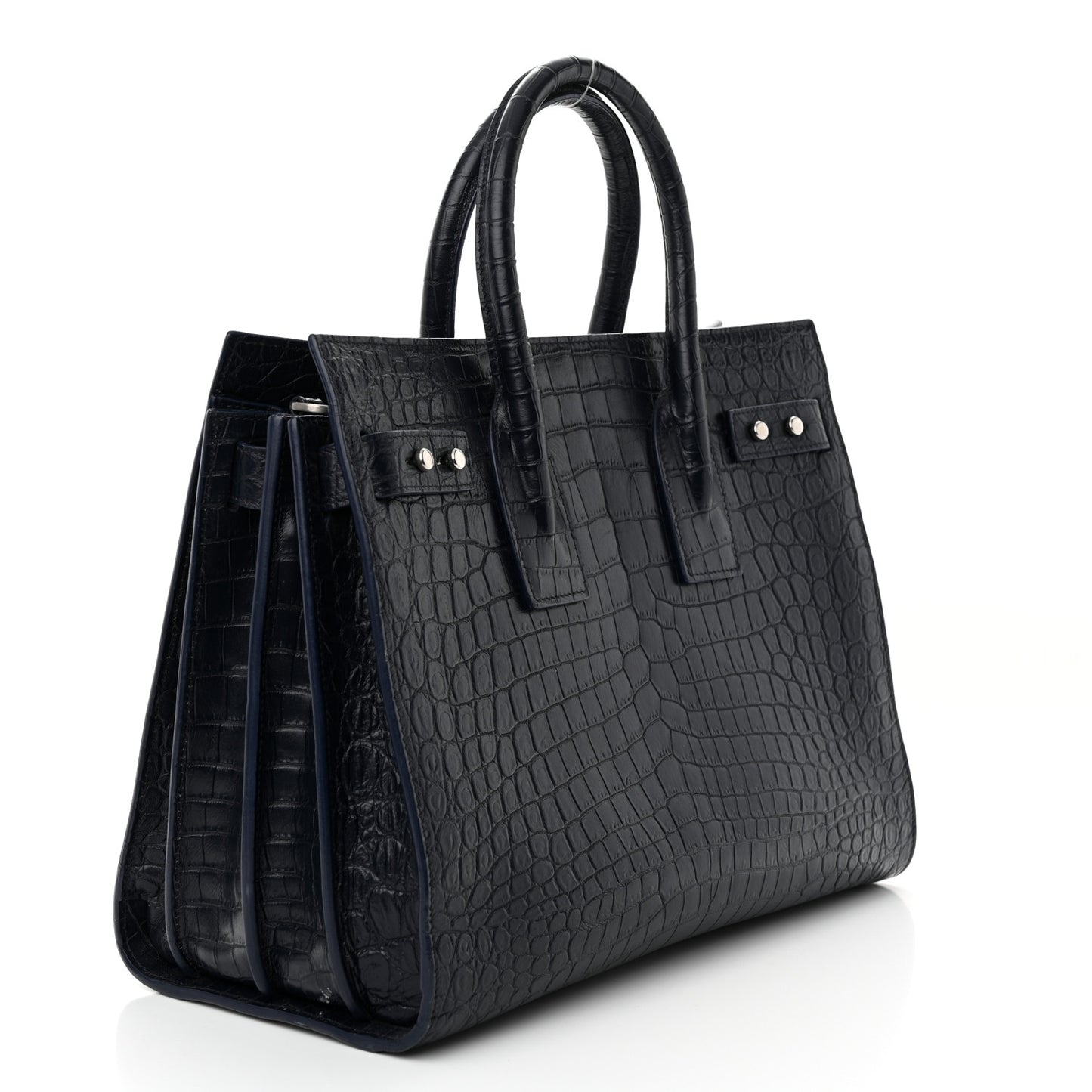 Saint Laurent/ Bags/ Totes /Saint Laurent Calfskin Crocodile Embossed Small Supple Sac de Jour Navy