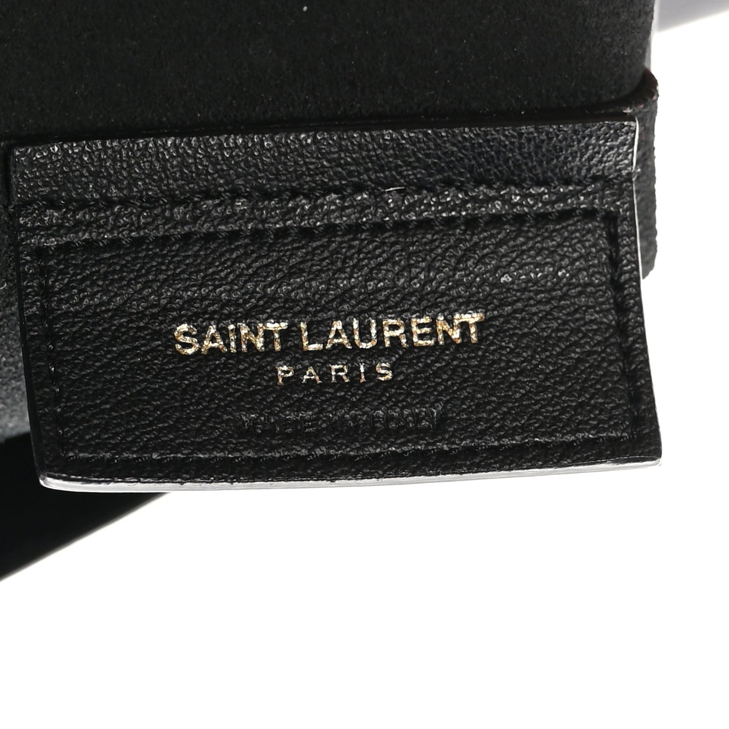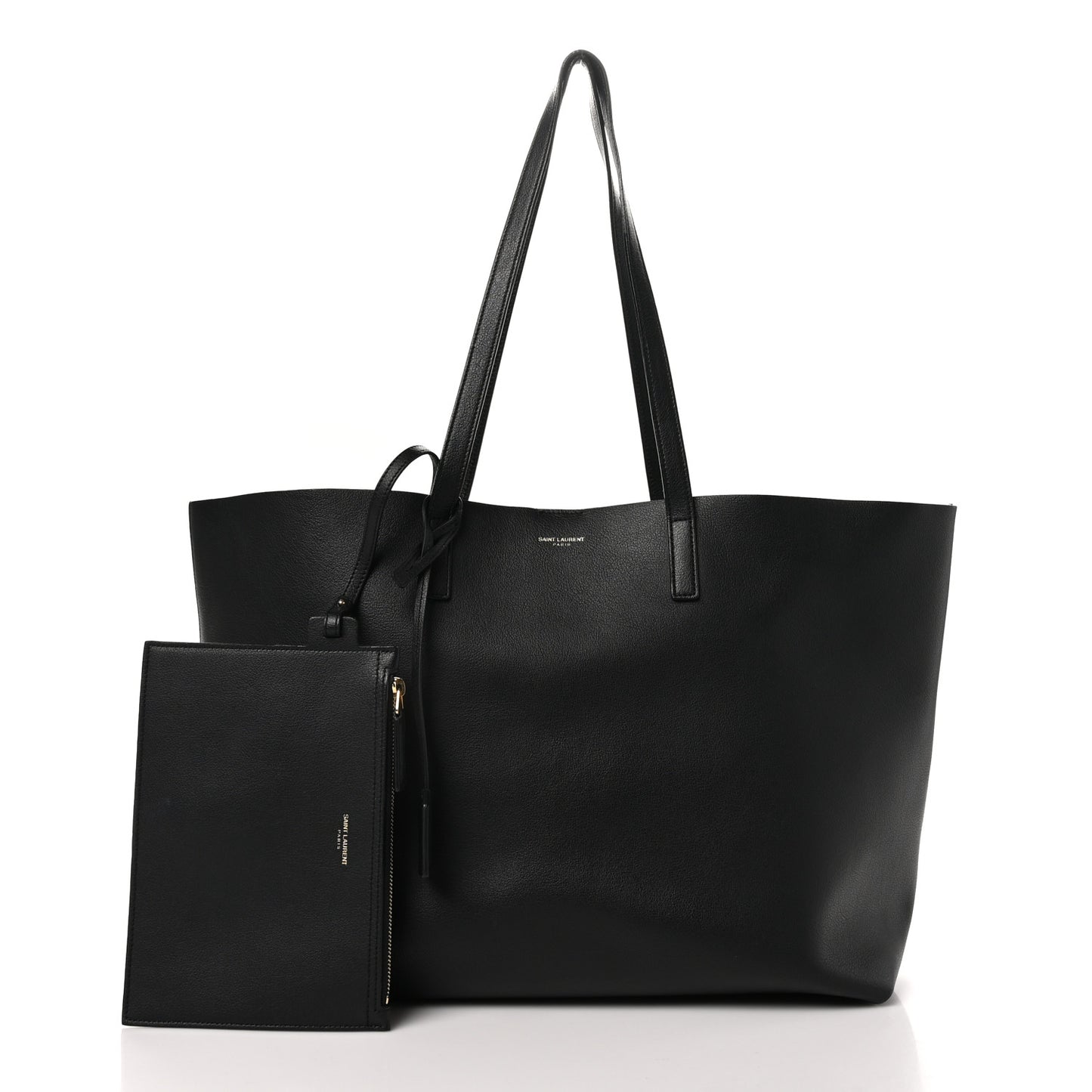 This is an authentic SAINT LAURENT Calfskin Large Shopping Tote in Black. This tote is crafted of calfskin leather in black. The shoulder bag features long strap handles attached to a wide-open top, revealing a matching suede leather interior with a matching removable pouch.Follow this item for alerts. Saint Laurent is a registered trademark of Saint Laurent. FASHIONPHILE is not affiliated with Saint Laurent.