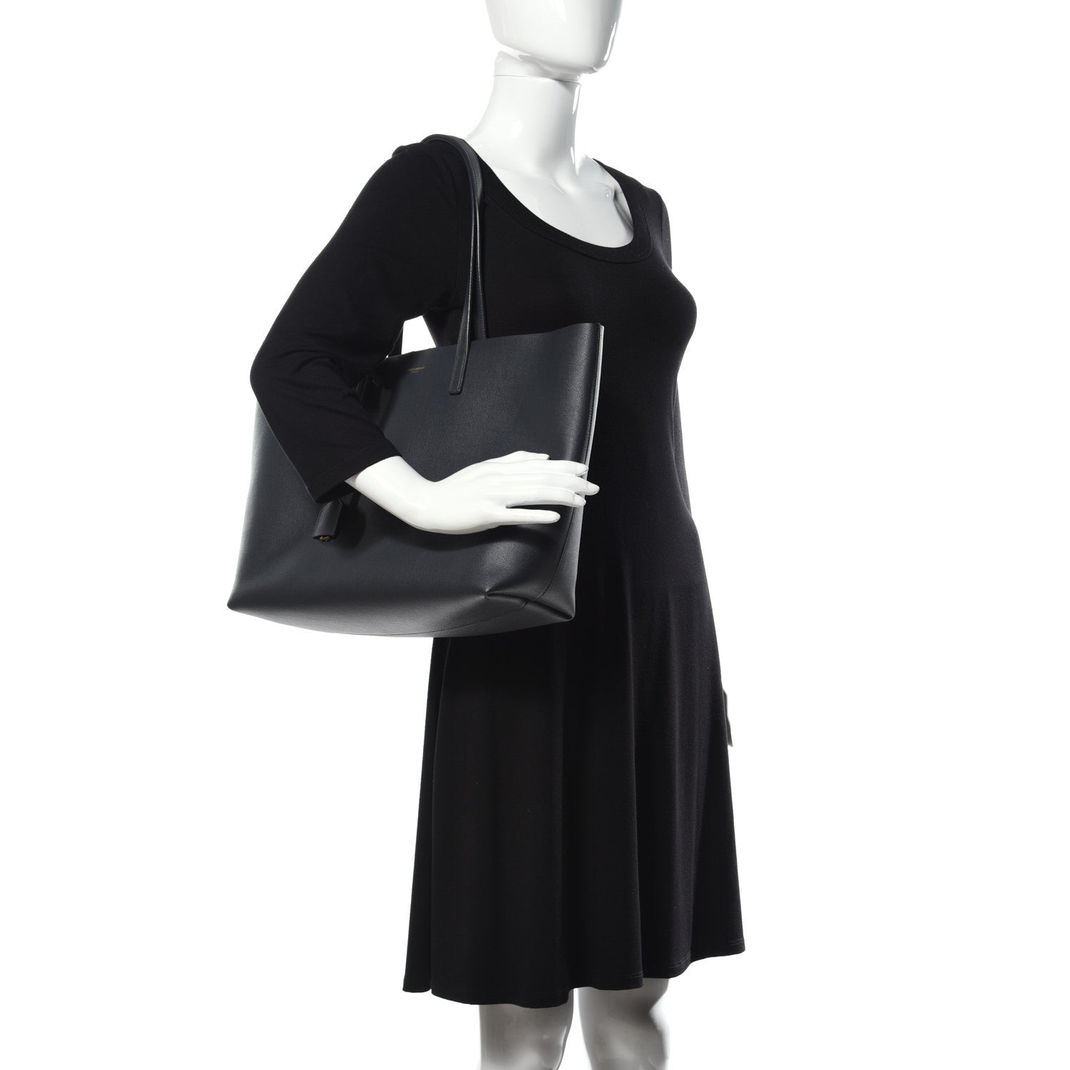 This is an authentic SAINT LAURENT Calfskin Large Shopping Tote in Navy. This chic tote is crafted of lovely navy calfskin leather and features an open top with a suede leather interior and a matching removable pouch.Follow this item for alerts. Saint Laurent is a registered trademark of Saint Laurent. FASHIONPHILE is not affiliated with Saint Laurent.