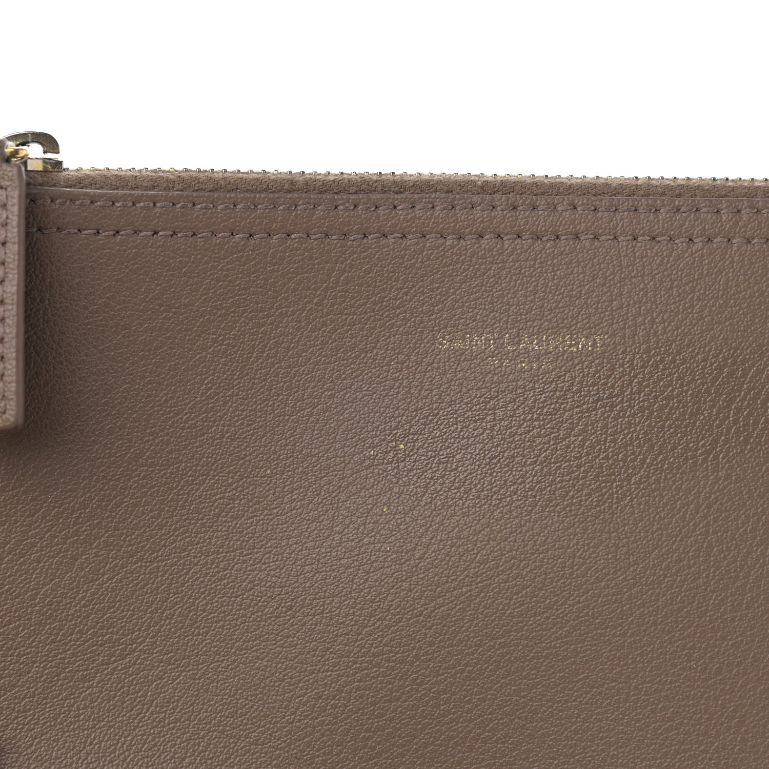 This is an authentic SAINT LAURENT Calfskin Large Shopping Tote in Taupe. This chic tote is crafted of calfskin leather in beige. This shoulder bag features shoulder straps and a polished gold snap. The top opens to a spacious beige suede leather interior with a matching removable zipper pouch.Follow this item for alerts. Saint Laurent is a registered trademark of Saint Laurent. FASHIONPHILE is not affiliated with Saint Laurent.