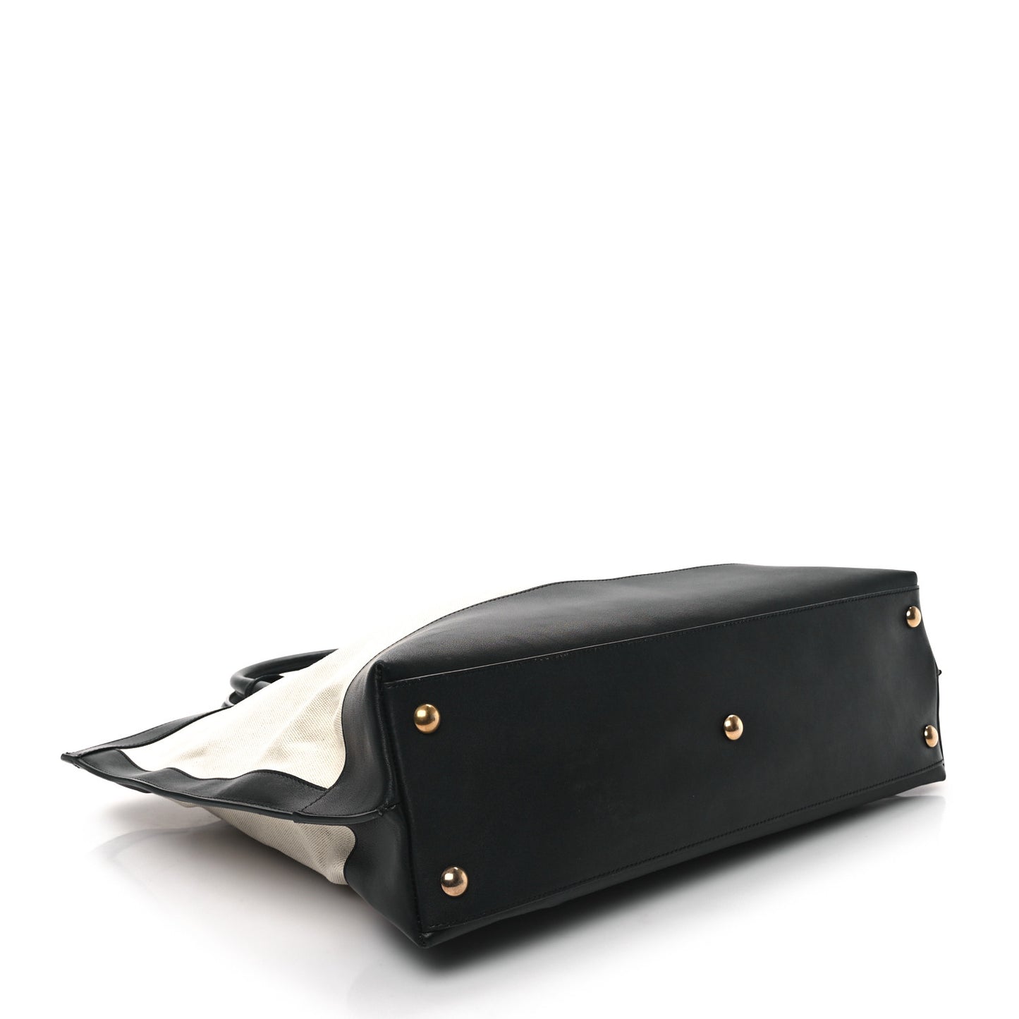 Saint Laurent/ Bags/ Totes /Saint Laurent Calfskin Linen Two Tone Cabas Tote Black