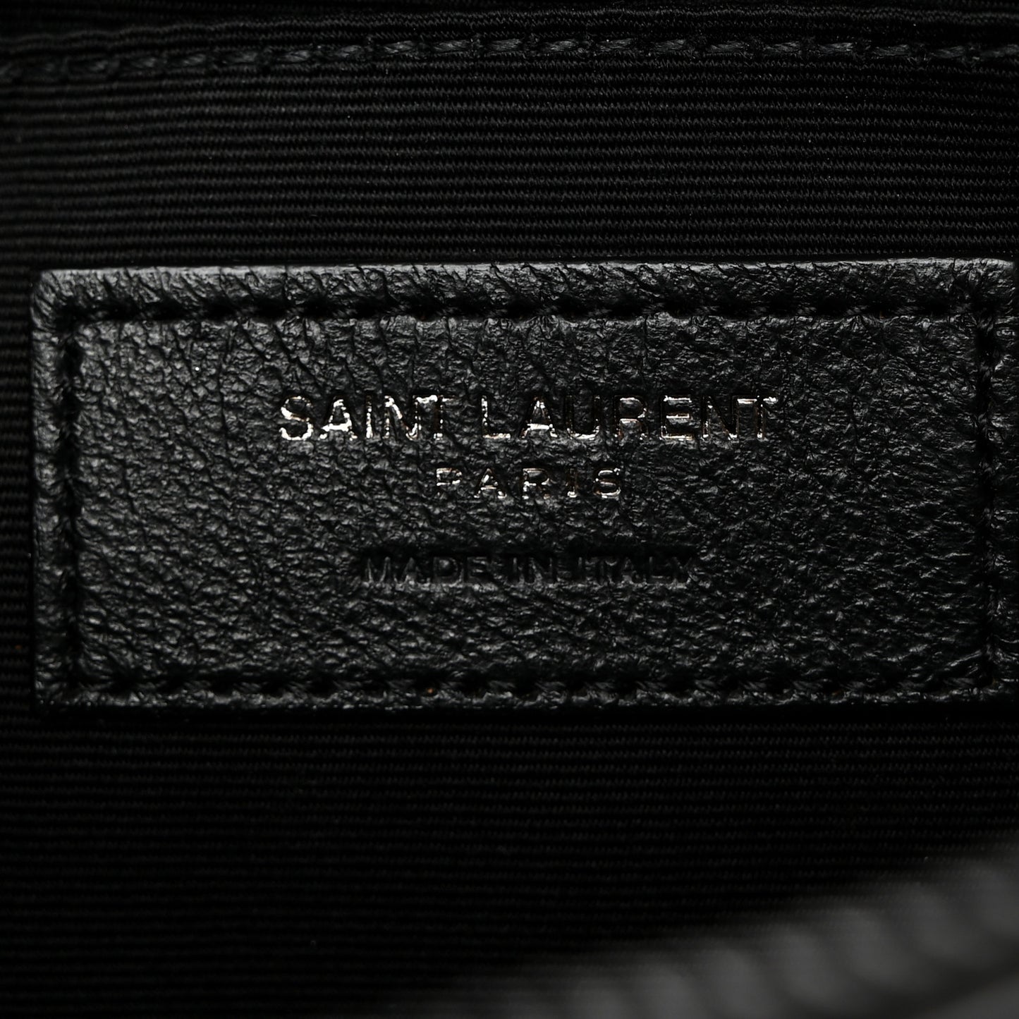 This is an authentic SAINT LAURENT Calfskin Matelasse Monogram Monochrome Lou Camera Bag in Black. This chic shoulder bag is crafted of chevron quilted calfskin leather in black. The bag features an adjustable leather shoulder strap, black leather tassel, a rear pocket, and black hardware, including YSL monogram on the front. The top zipper opens to a black fabric interior with a patch pocket.Follow this item for alerts. Saint Laurent is a registered trademark of Saint Laurent. FASHIONPHILE is not affiliated with Saint Laurent.