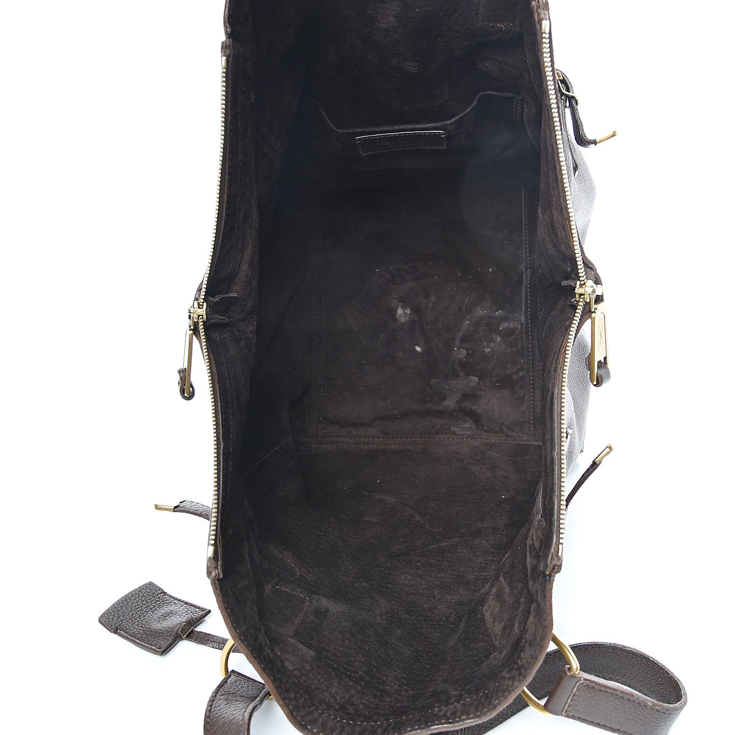 This is an authentic SAINT LAURENT Calfskin Medium Downtown in Olive. This stylish tote is crafted of calfskin leather in a north south silhouette. The bag features front decorative belts with polished brass buckles, a sturdy top strap handles with anchors and brass handle rings. The top opens with zippers to an interior of brown suede with a patched pocket. This is a fabulous tote that is very chic and functional as an ideal everyday bag for all of your everyday needs with the right touch of stylish chic from Yves Saint Laurent.Follow this item for alerts. Saint Laurent is a registered trademark of Saint Laurent. FASHIONPHILE is not affiliated with Saint Laurent.