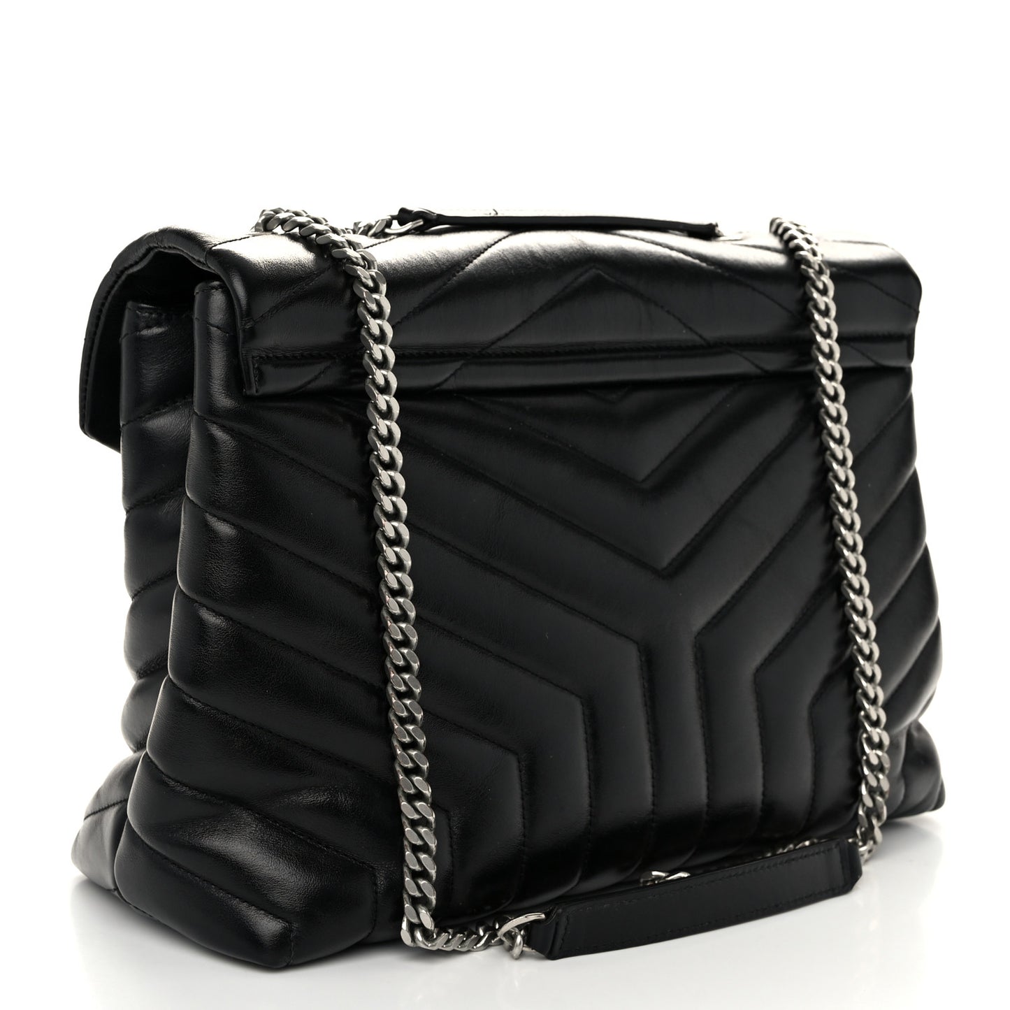 Calfskin Y Quilted Monogram Medium Loulou Chain Satchel Black