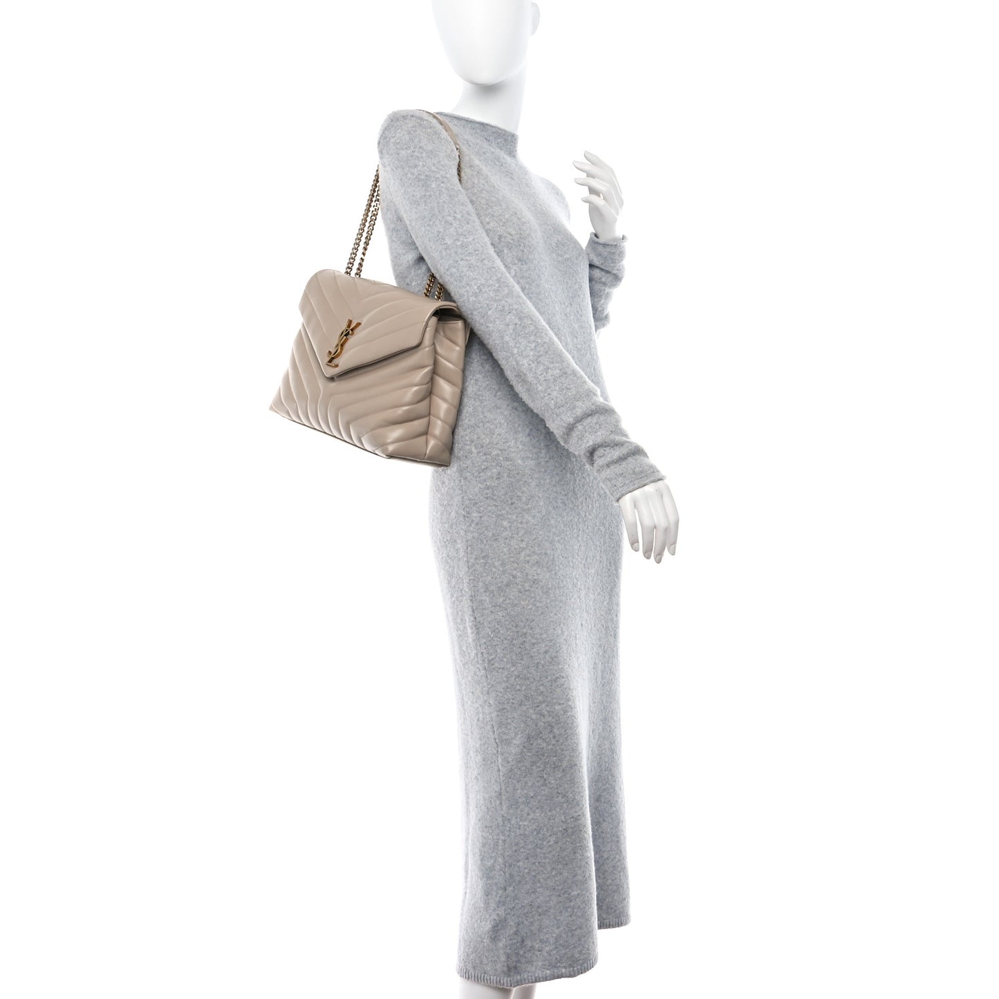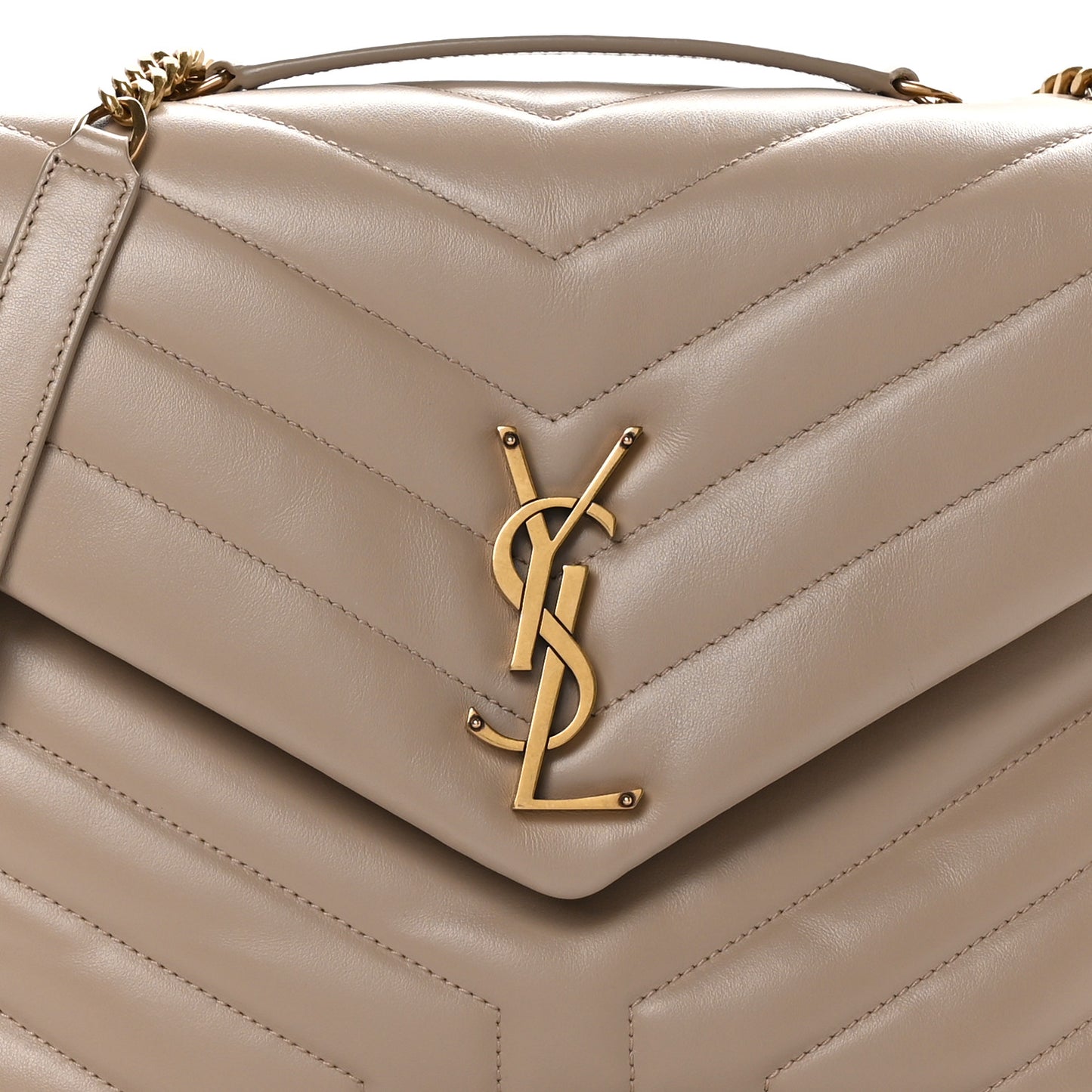 Saint Laurent/ Bags/ Handbags /Saint Laurent SAINT LAURENT Calfskin Y Quilted Monogram Medium Loulou Chain Satchel Dark Beige