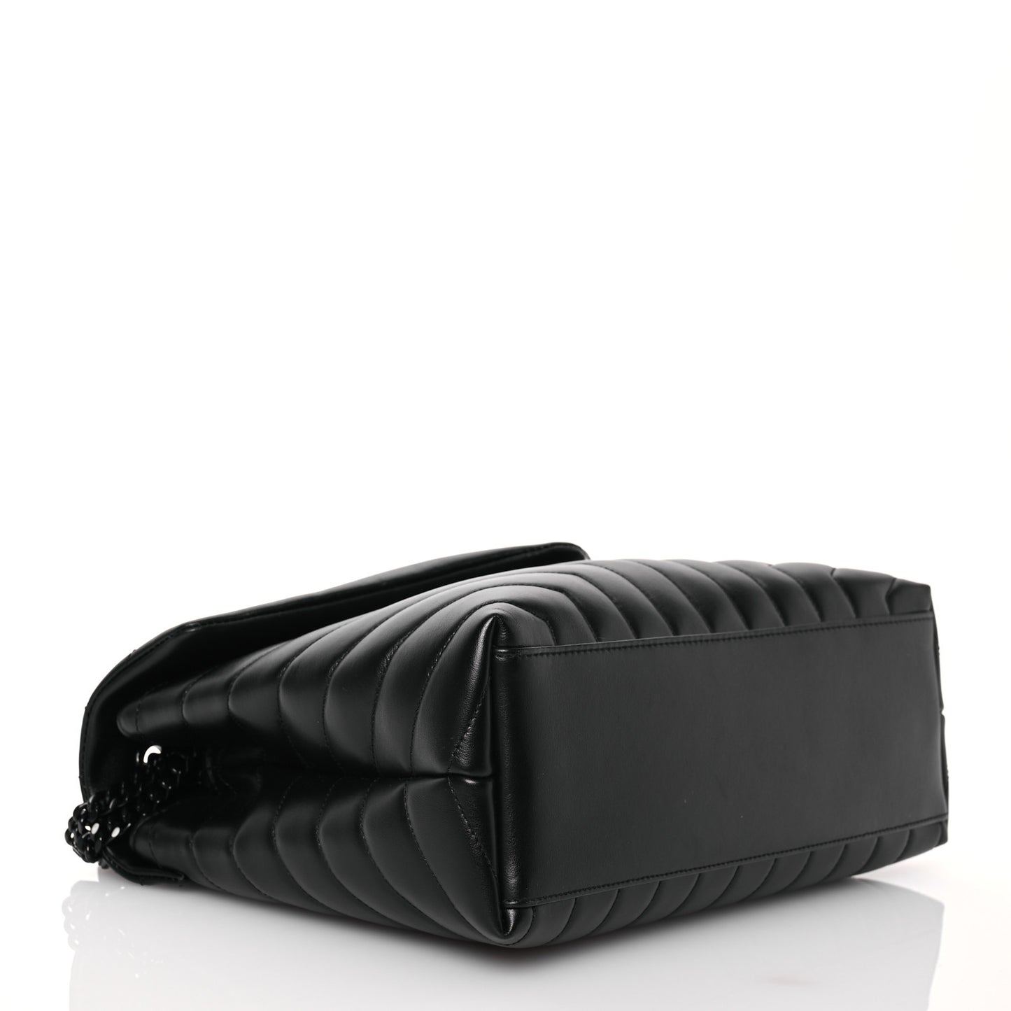 Calfskin Y Quilted Monogram Monochrome Medium Loulou Chain Satchel Black