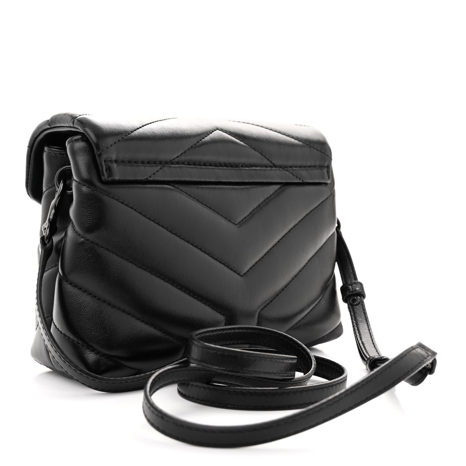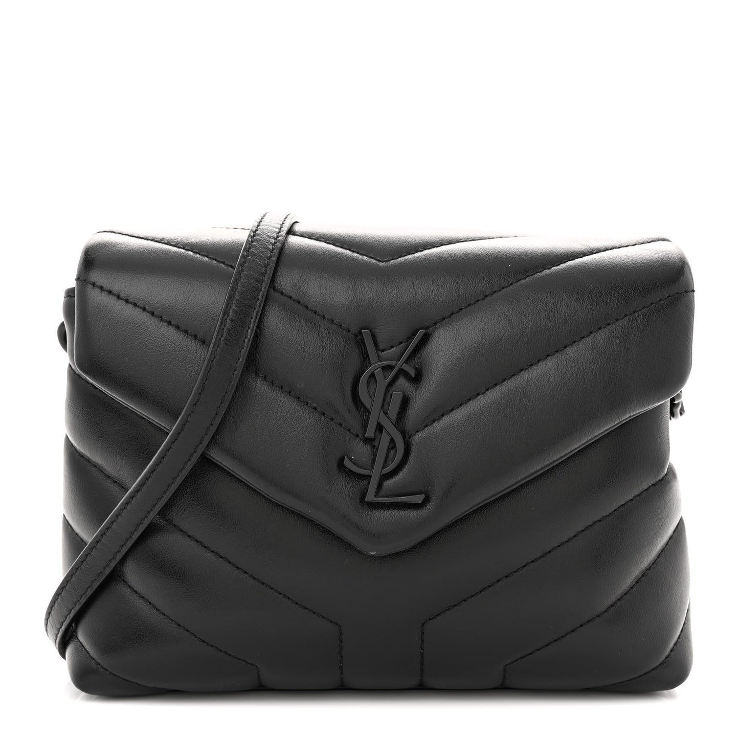 This is an authentic SAINT LAURENT Calfskin Y Quilted Monogram Monochrome Toy Loulou Crossbody Bag in Black. This chic crossbody bag is crafted of chevron-quilted calfskin leather in black. The bag features an adjustable shoulder strap and black hardware. The crossover flap opens to a partitioned black fabric interior with card slots and a zipper pocket.Follow this item for alerts. Saint Laurent is a registered trademark of Saint Laurent. FASHIONPHILE is not affiliated with Saint Laurent.