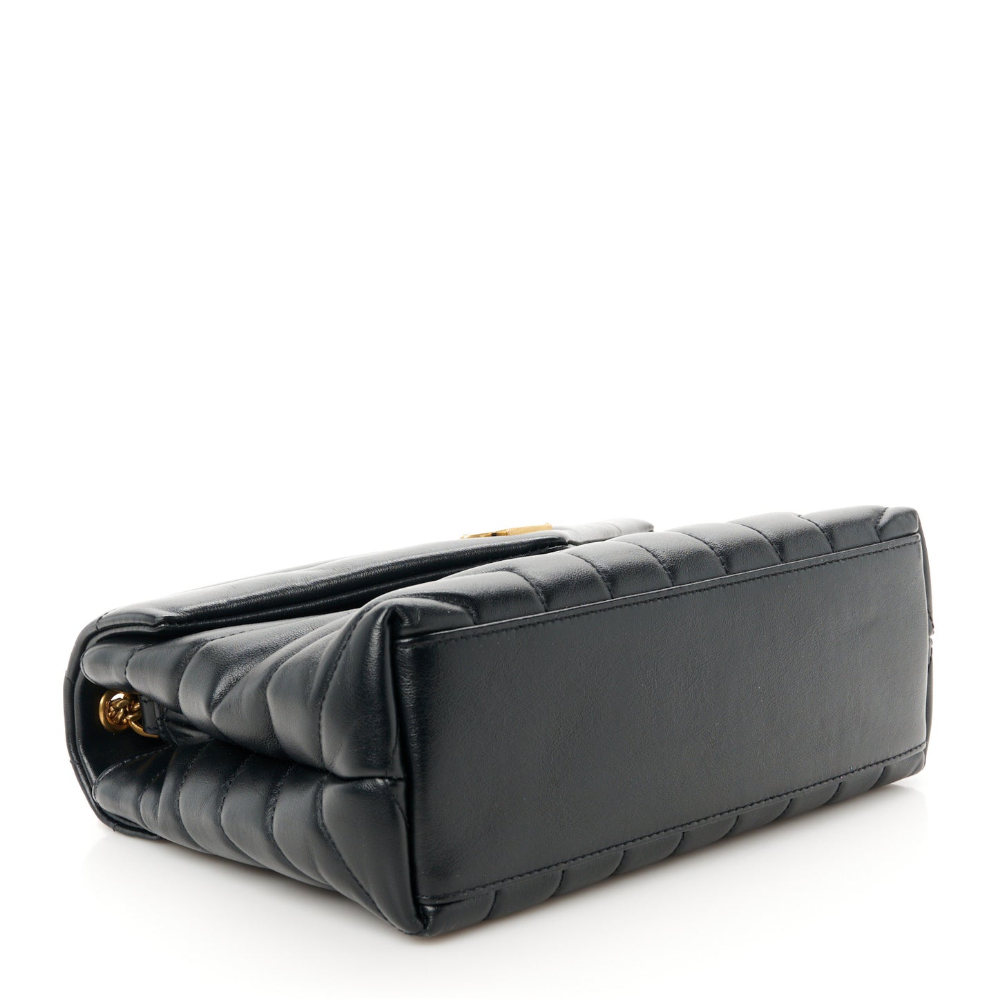 Calfskin Y Quilted Monogram Small Loulou Chain Satchel Black