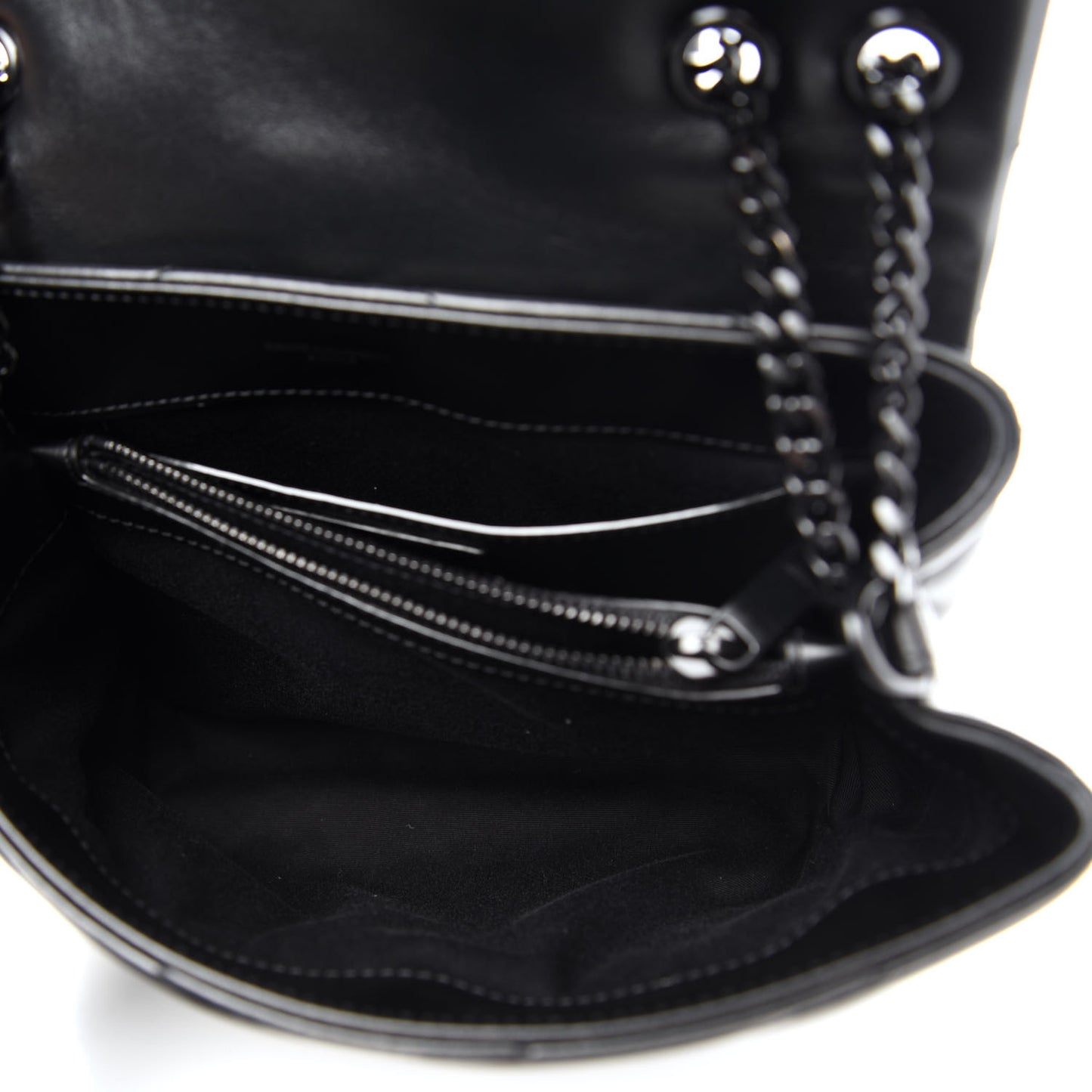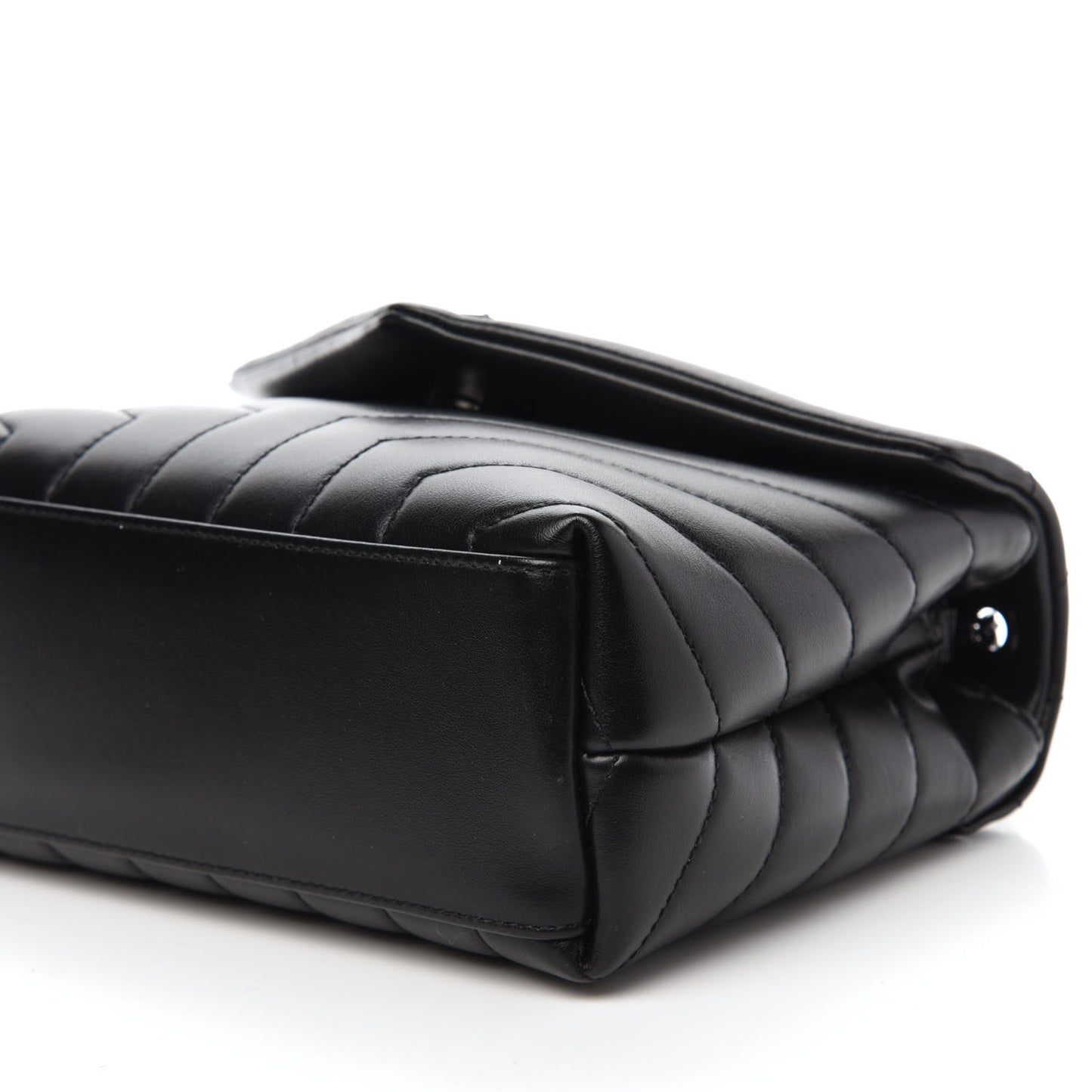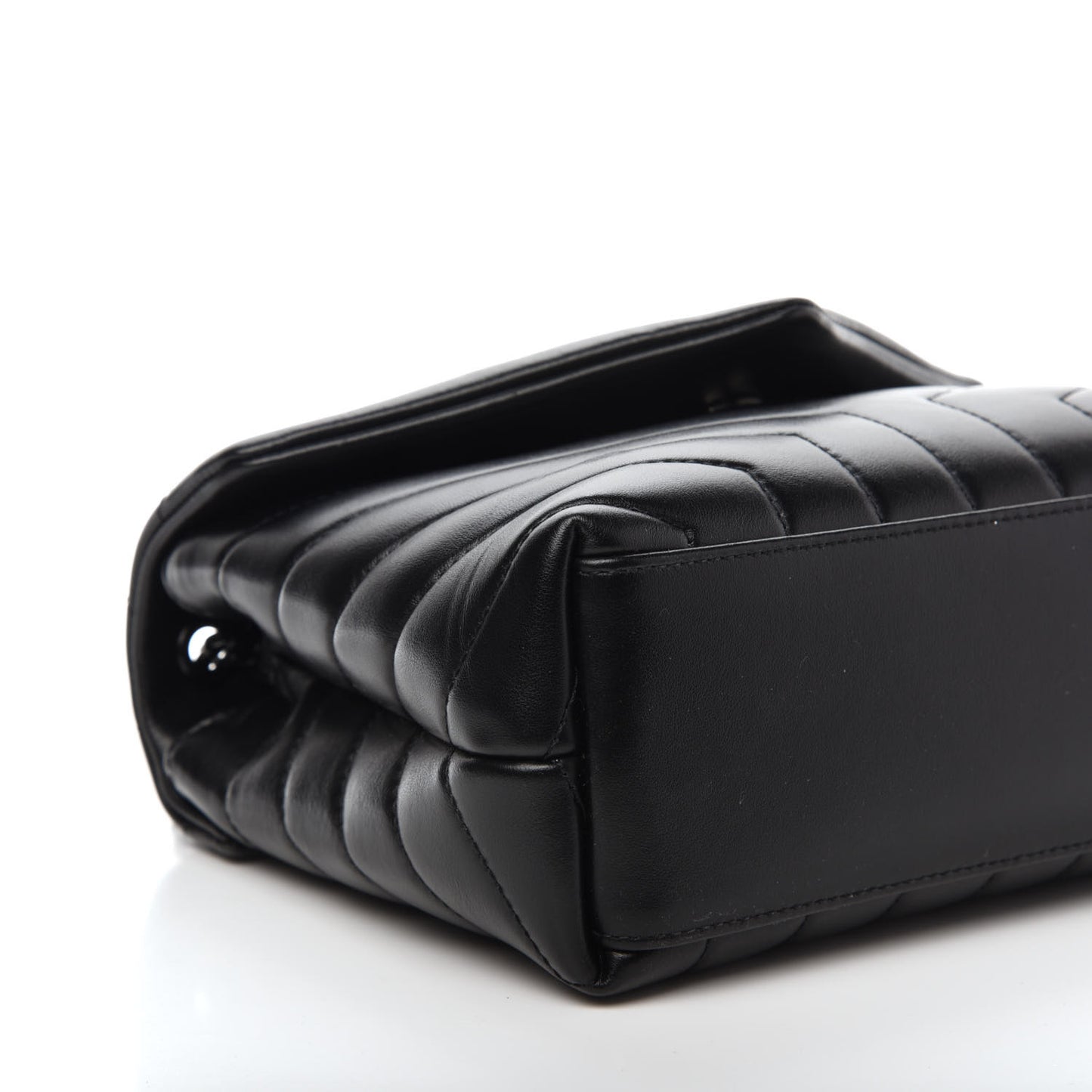 Calfskin Y Quilted Monogram Small Loulou Chain Satchel Black