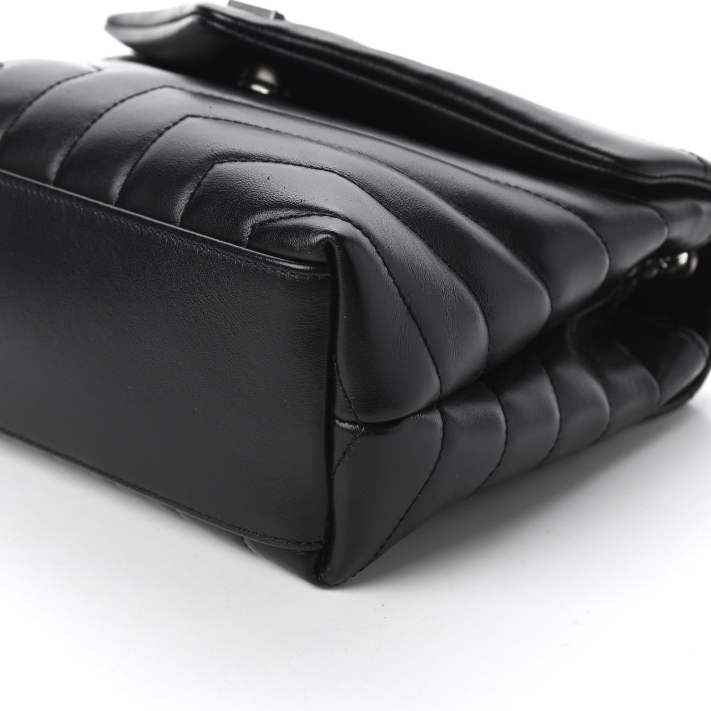 Calfskin Y Quilted Monogram Small Loulou Chain Satchel Black