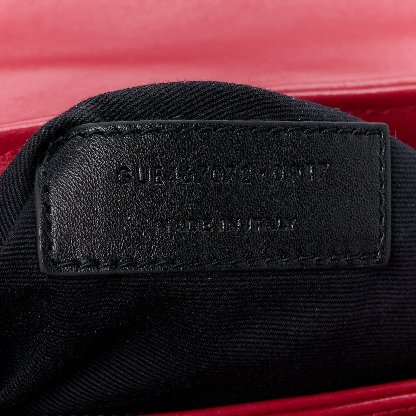 This is an authentic SAINT LAURENT Calfskin Y Quilted Monogram Toy Loulou Monogram Crossbody Bag in New Lipstick. This shoulder bag is crafted of calfskin leather in red. The crossbody features a shoulder strap with aged silver hardware. The flap opens to a compact black fabric partitioned interior with a zipper pocket and card slots.Follow this item for alerts. Saint Laurent is a registered trademark of Saint Laurent. FASHIONPHILE is not affiliated with Saint Laurent.