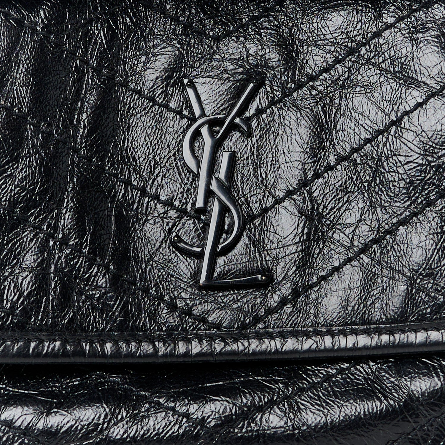 Saint Laurent/ Bags/ Handbags /Saint Laurent Crinkled Calfskin Matelasse Monogram Baby Niki Chain Satchel Black