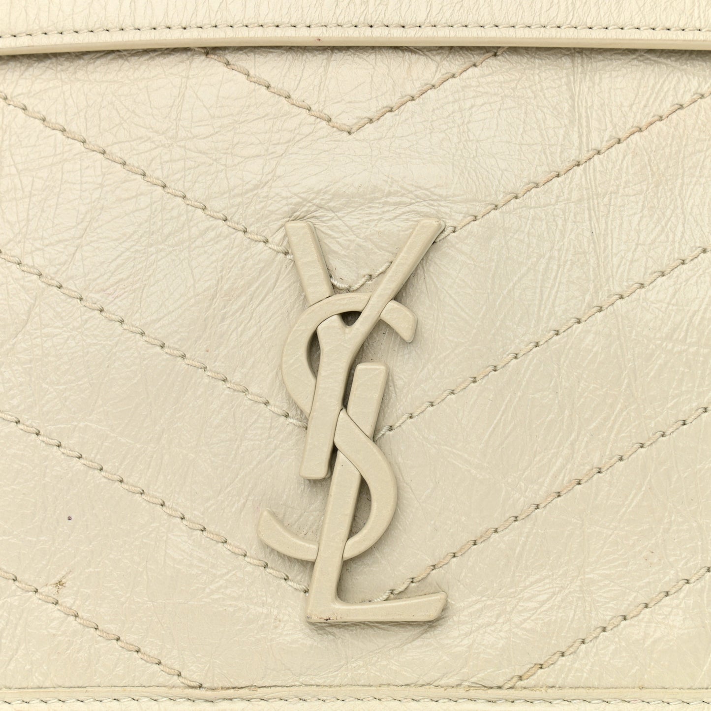 Saint Laurent/ Bags/ Shoulder Bags /Saint Laurent Crinkled Calfskin Matelasse Monogram Medium Niki Chain Satchel Ivory