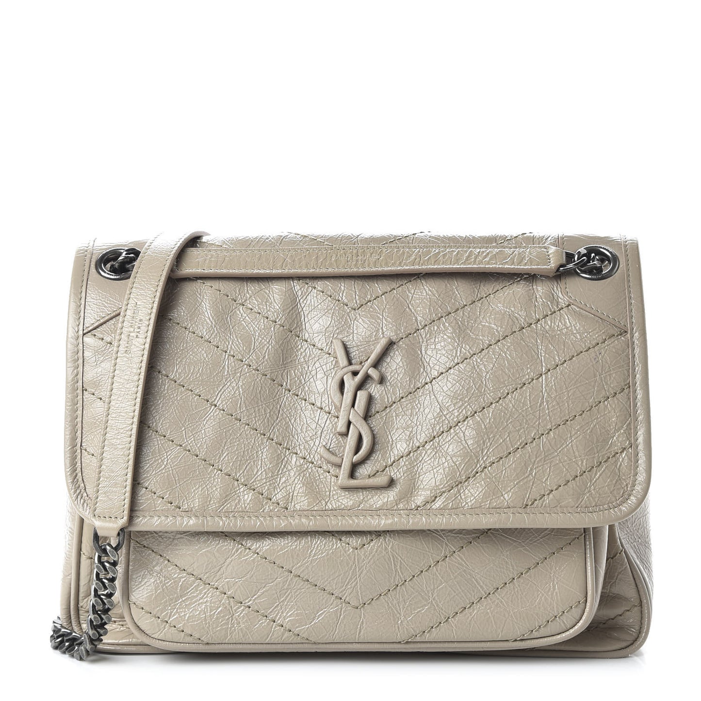 Saint Laurent/ Bags/ Shoulder Bags /Saint Laurent Crinkled Calfskin Matelasse Monogram Medium Niki Chain Satchel Light Natural