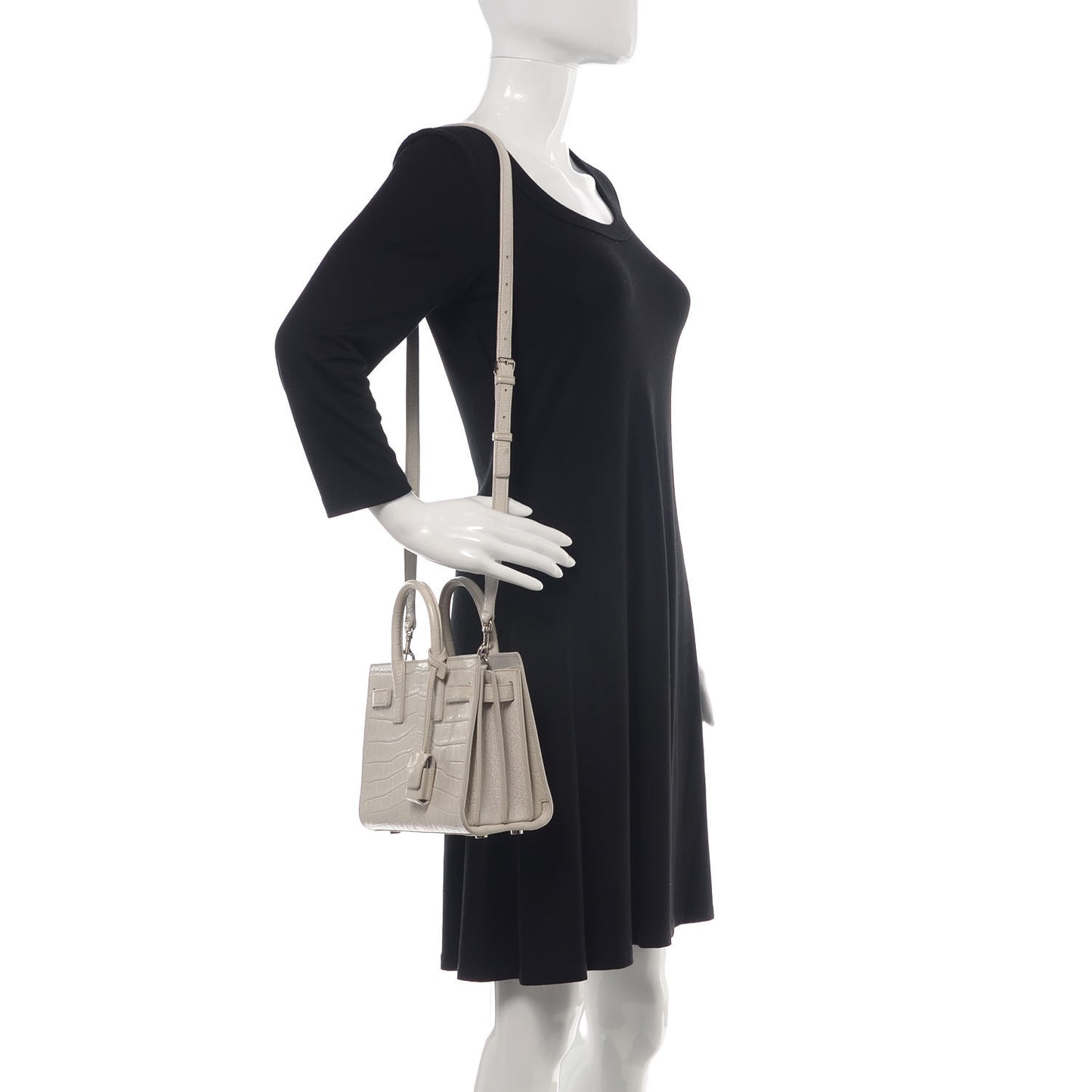 Saint Laurent/ Bags/ Shoulder Bags /Saint Laurent Croc Calfskin Embossed Nano Sac De Jour Cream Souffle