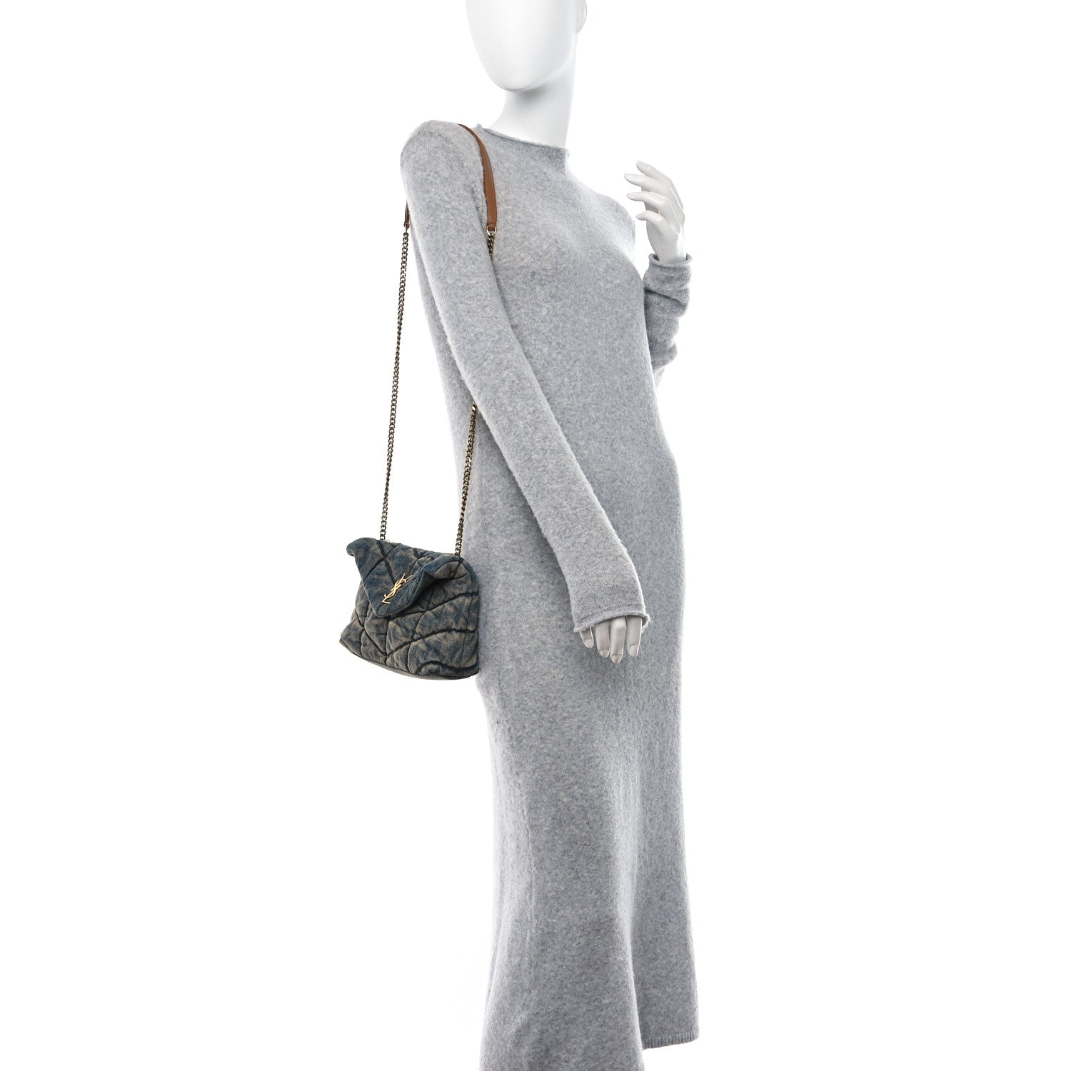 Saint Laurent/ Bags/ Shoulder Bags /Saint Laurent Denim Quilted Toy Loulou Puffer Monogram Chain Satchel Blue Cinnamon