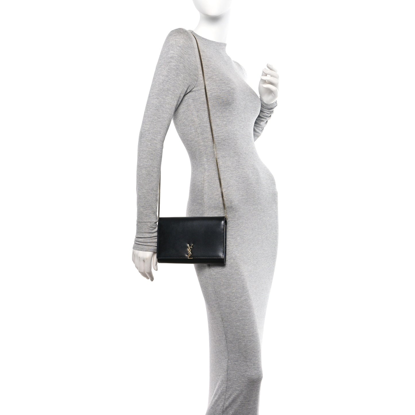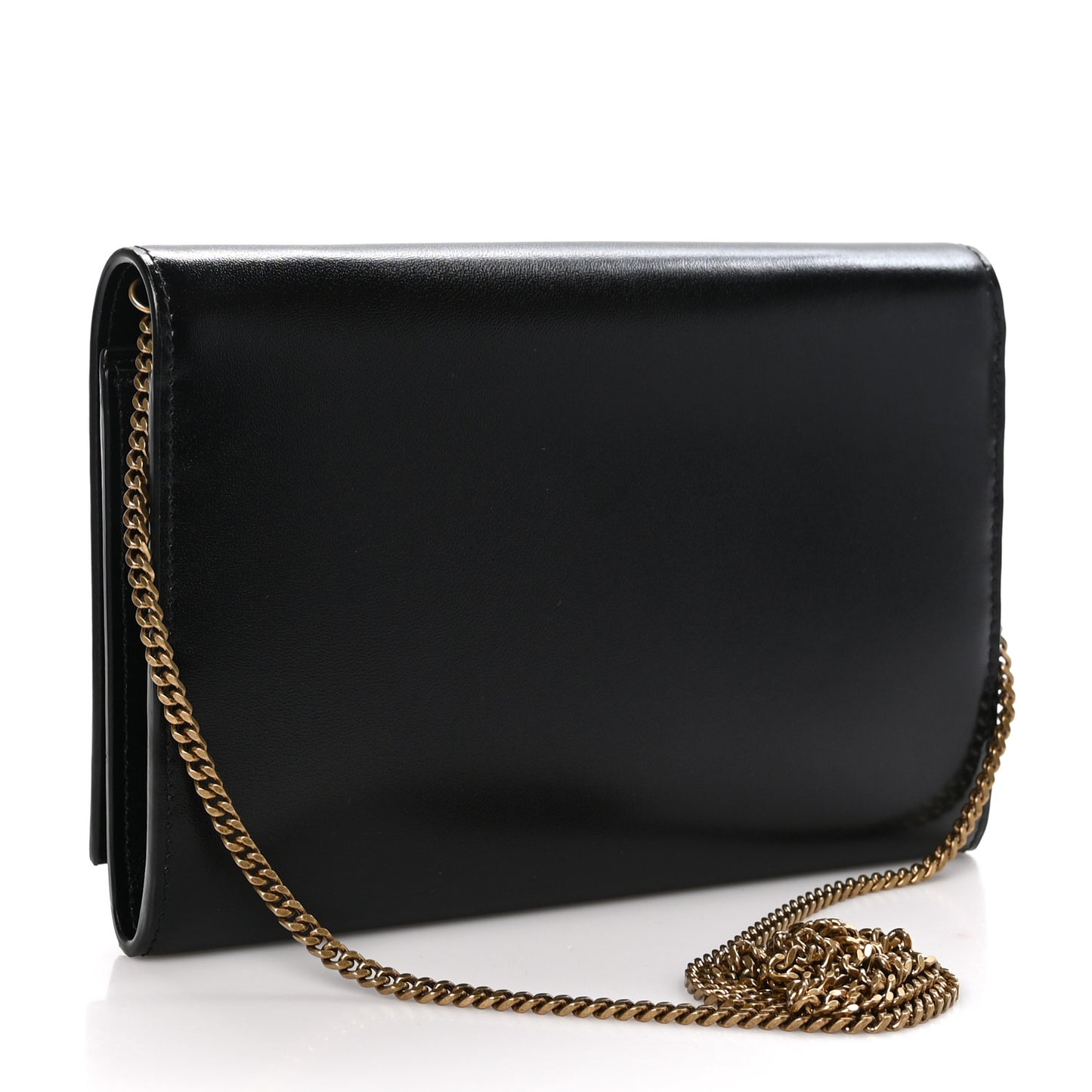 Saint Laurent/ Accessories/ Shoulder Bags /Saint Laurent Glossy Calfskin Monogram Chain Wallet Black