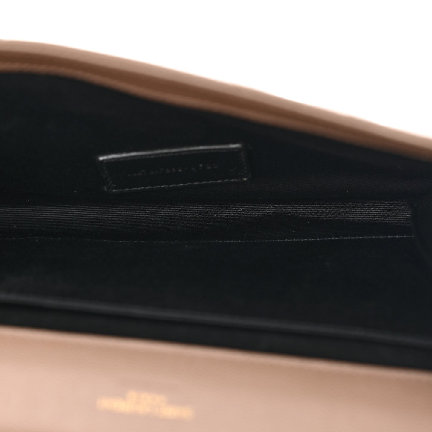 Saint Laurent/ Accessories/ Handbags /Saint Laurent Grain De Poudre Matelasse Chevron Monogram Cassandre Flap Pouch Taupe