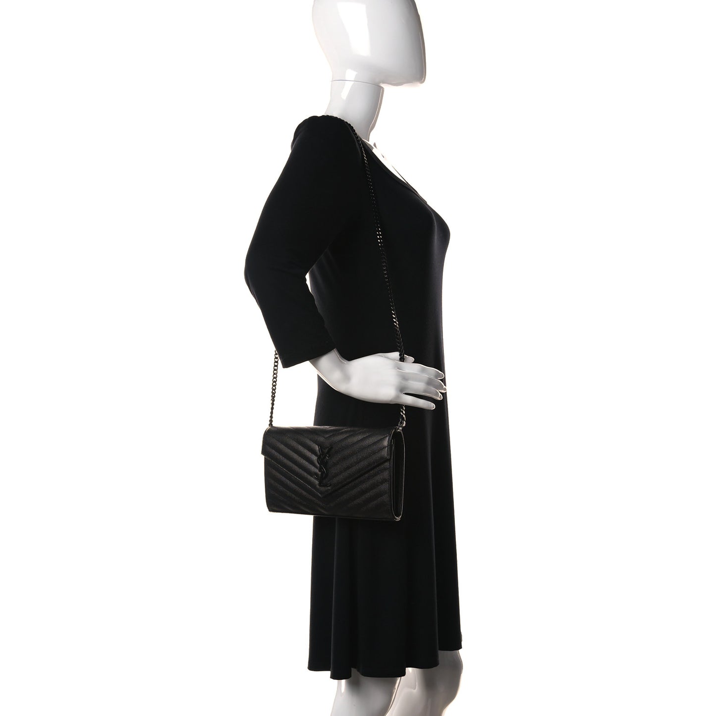 Saint Laurent/ Bags/ Wallet Style /Saint Laurent Grain De Poudre Matelasse Chevron Monogram Chain Wallet Black