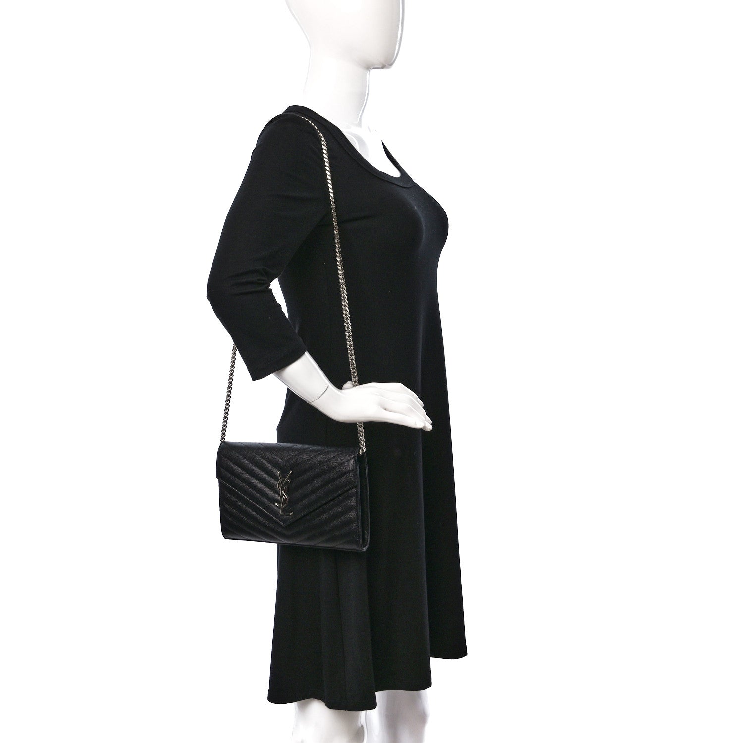 Saint Laurent/ Bags/ Handbags /Saint Laurent Grain De Poudre Matelasse Chevron Monogram Chain Wallet Black