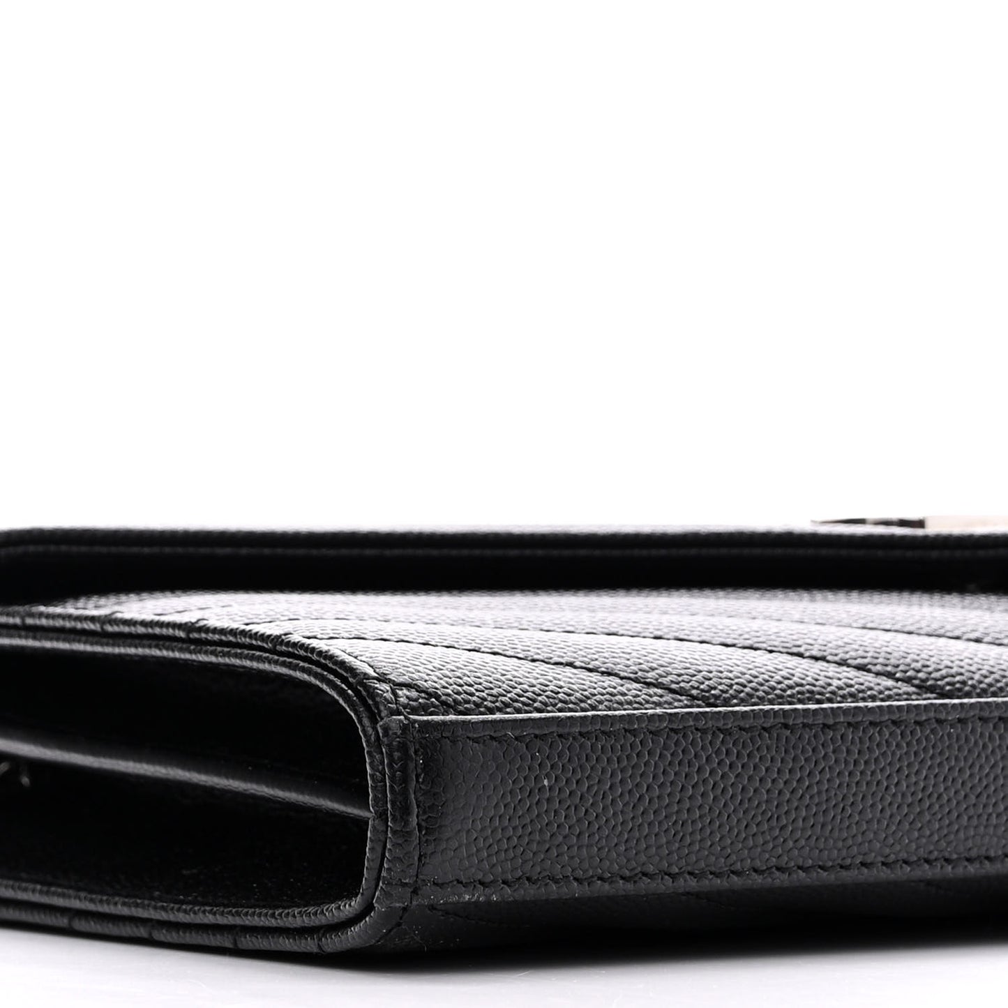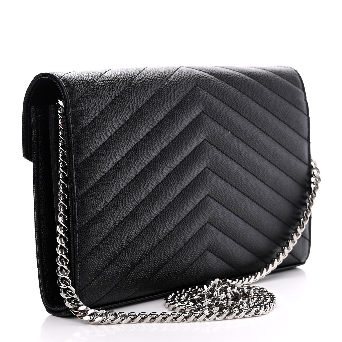 Saint Laurent/ Bags/ Wallet Style /Saint Laurent Grain De Poudre Matelasse Chevron Monogram Chain Wallet Black