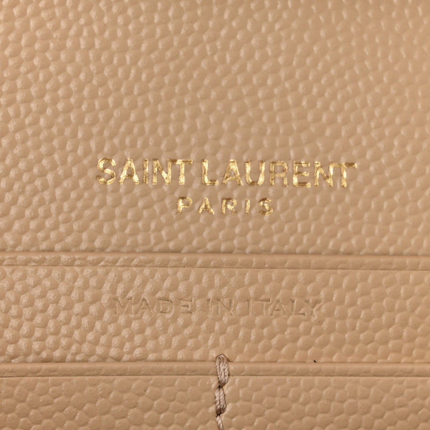 Saint Laurent/ Bags/ Wallet Style /Saint Laurent Grain De Poudre Matelasse Chevron Monogram Chain Wallet Light Beige