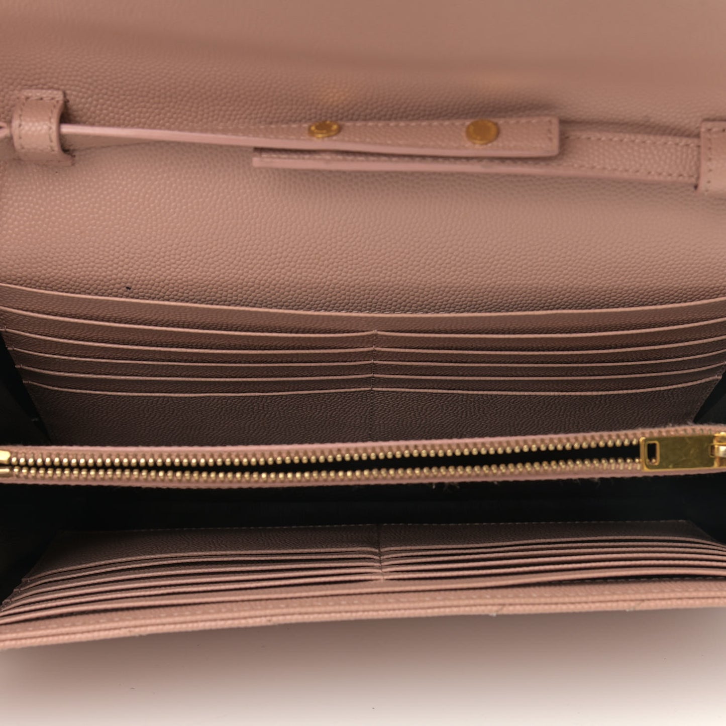 Saint Laurent/ Bags/ Wallet Style /Saint Laurent Grain De Poudre Matelasse Chevron Monogram Chain Wallet Pale Pink