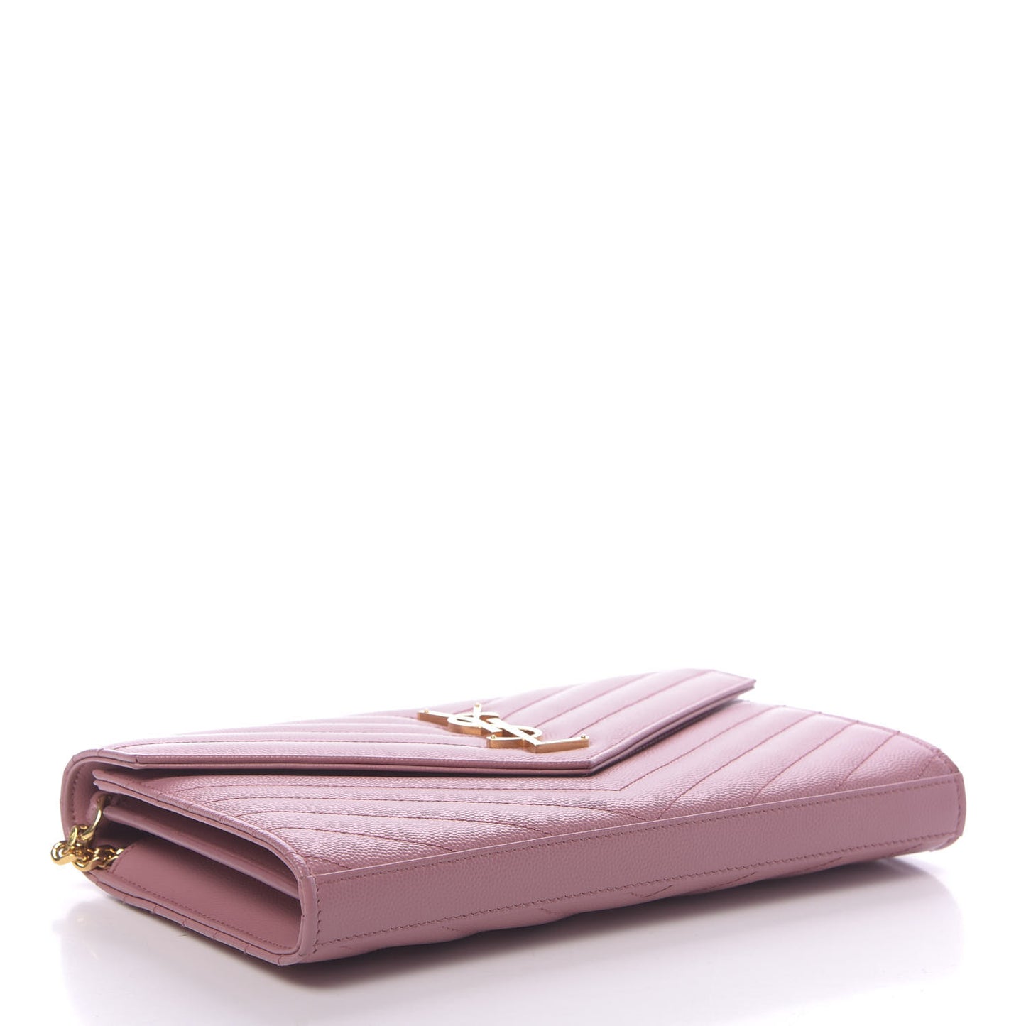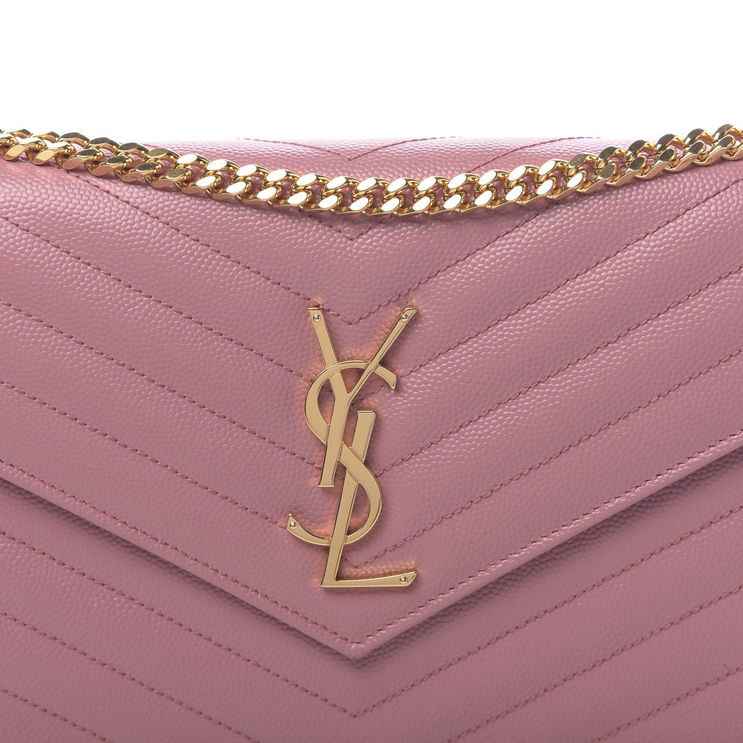 Saint Laurent/ Bags/ Wallet Style /Saint Laurent Grain De Poudre Matelasse Chevron Monogram Chain Wallet Tender Pink