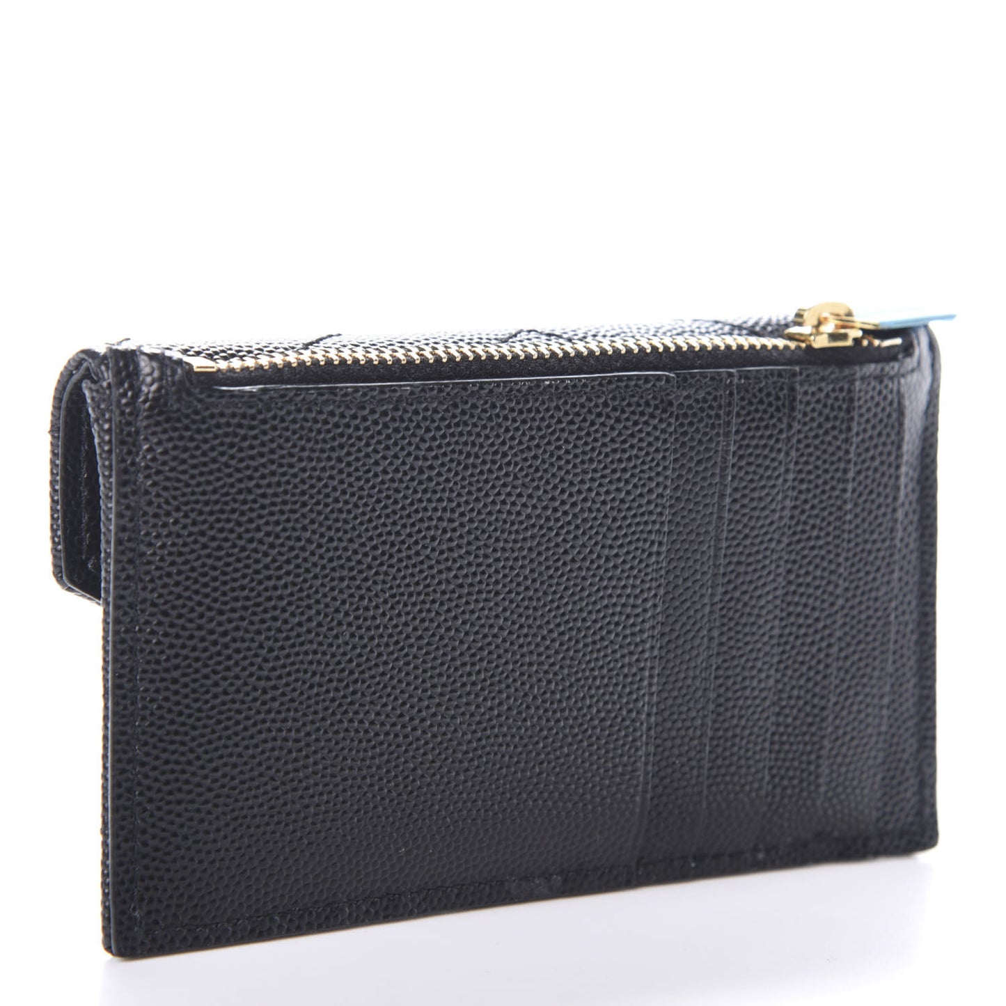 This is an authentic SAINT LAURENT Grain De Poudre Matelasse Chevron Monogram Compact Wallet in Black. This chic and petite wallet is crafted in grained calfskin in black, with card slots on the front and a gold top zipper that opens to a black leather interior. This is an excellent case that is practical, with the classic chic only from Saint Laurent!Follow this item for alerts. Saint Laurent is a registered trademark of Saint Laurent. FASHIONPHILE is not affiliated with Saint Laurent.