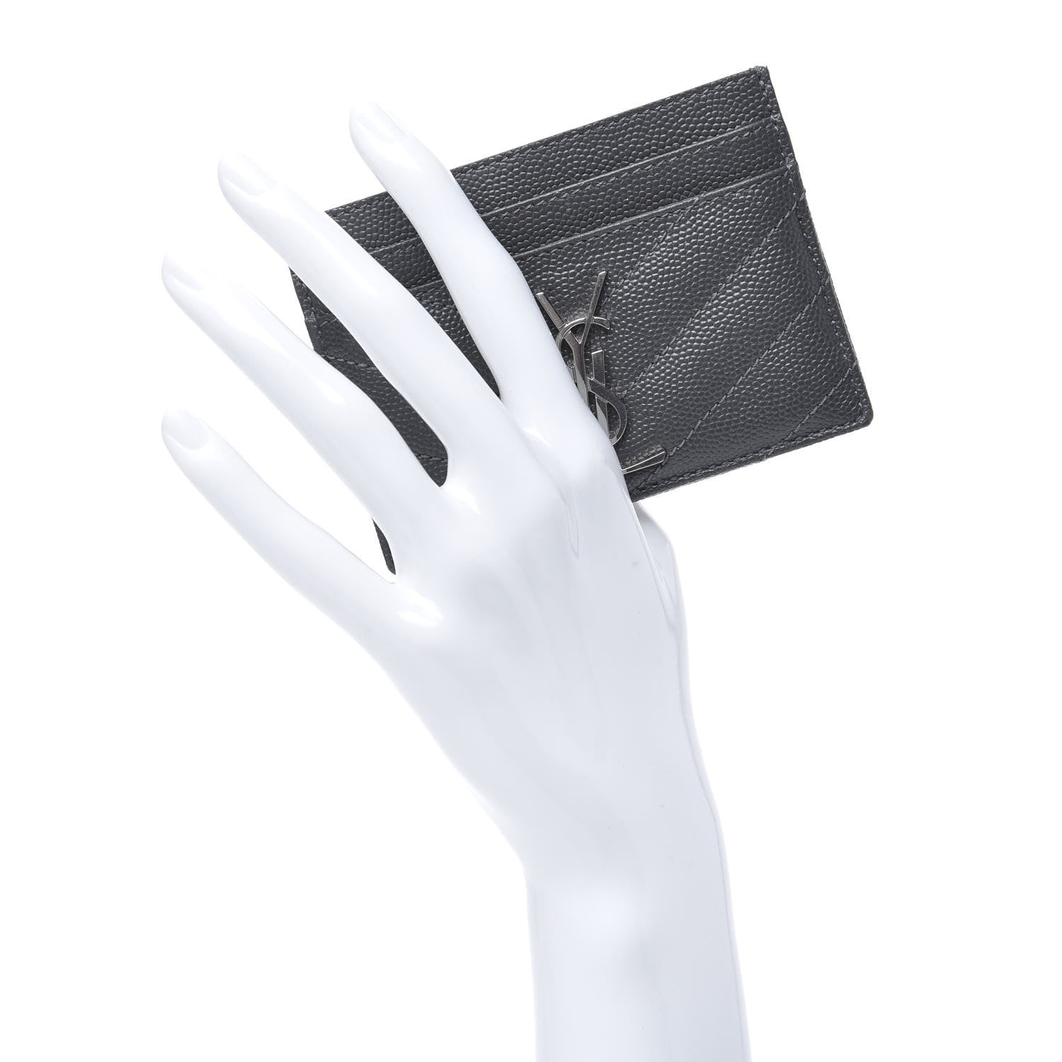 This is an authentic SAINT LAURENT Grain De Poudre Matelasse Chevron Monogram Credit Card Case in Black. This chic and petite wallet is crafted of grained calfskin leather in grey. The case features a prominent silver YSL logo and has multiple card slots.Follow this item for alerts. Saint Laurent is a registered trademark of Saint Laurent. FASHIONPHILE is not affiliated with Saint Laurent.