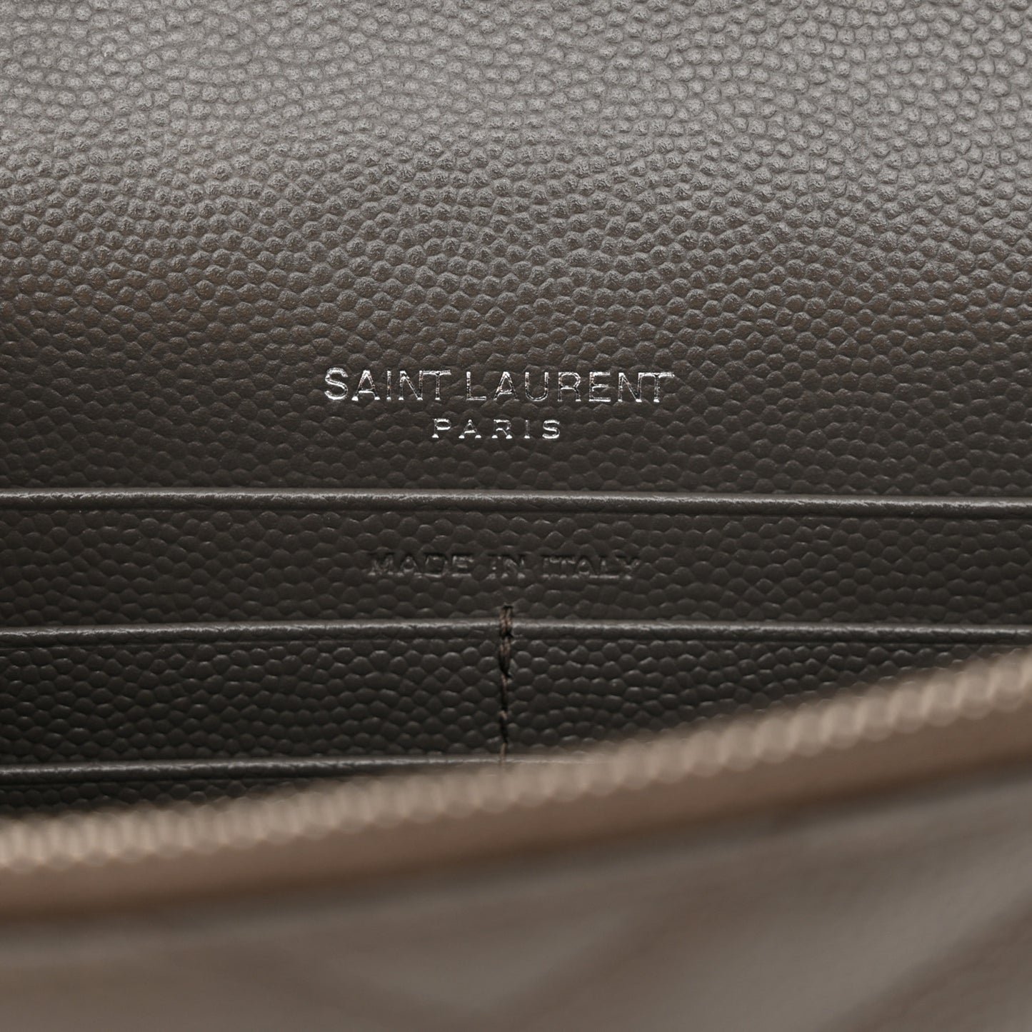 Saint Laurent/ Bags/ Wallet Style /Saint Laurent Grain De Poudre Matelasse Chevron Monogram Envelope Chain Wallet Earth