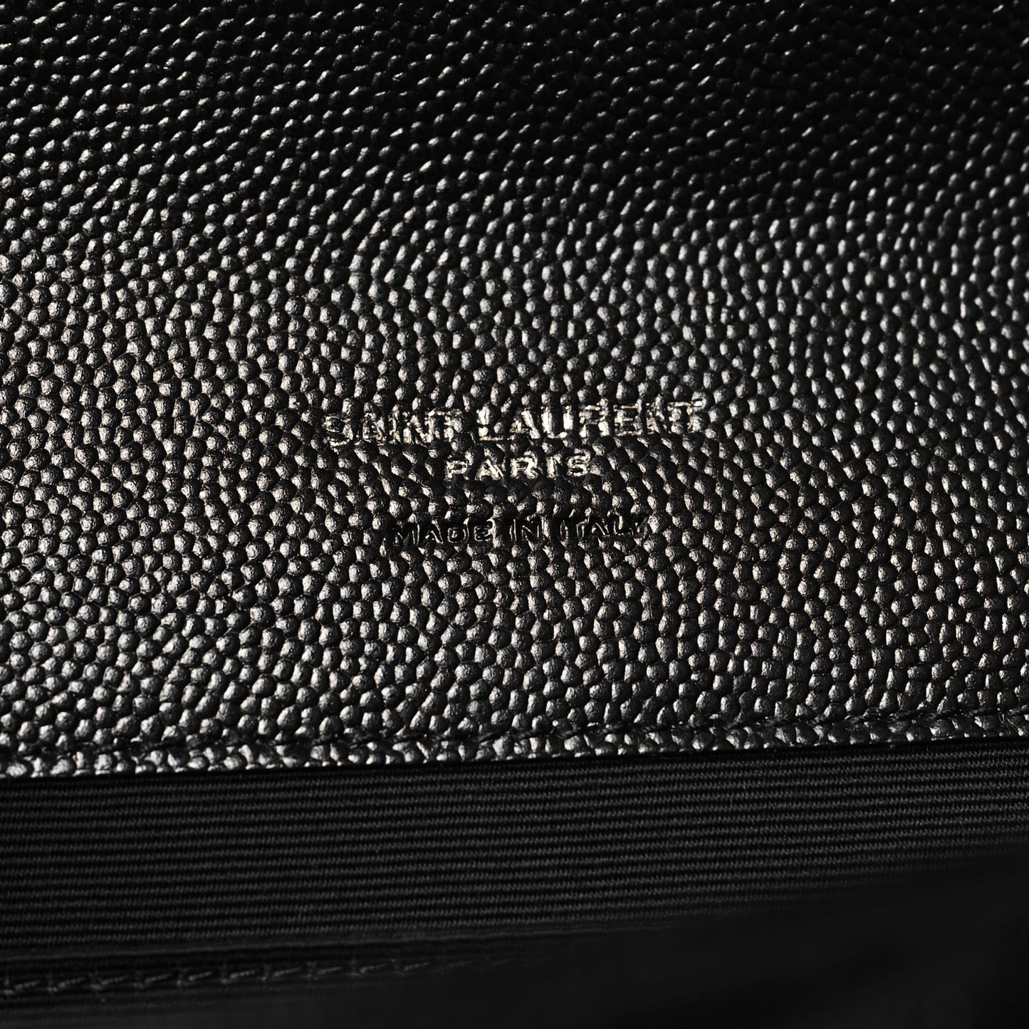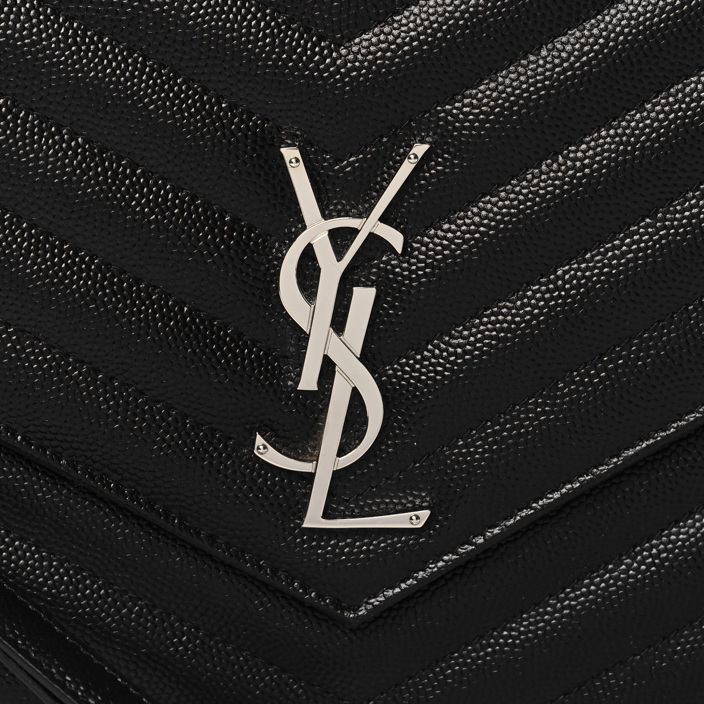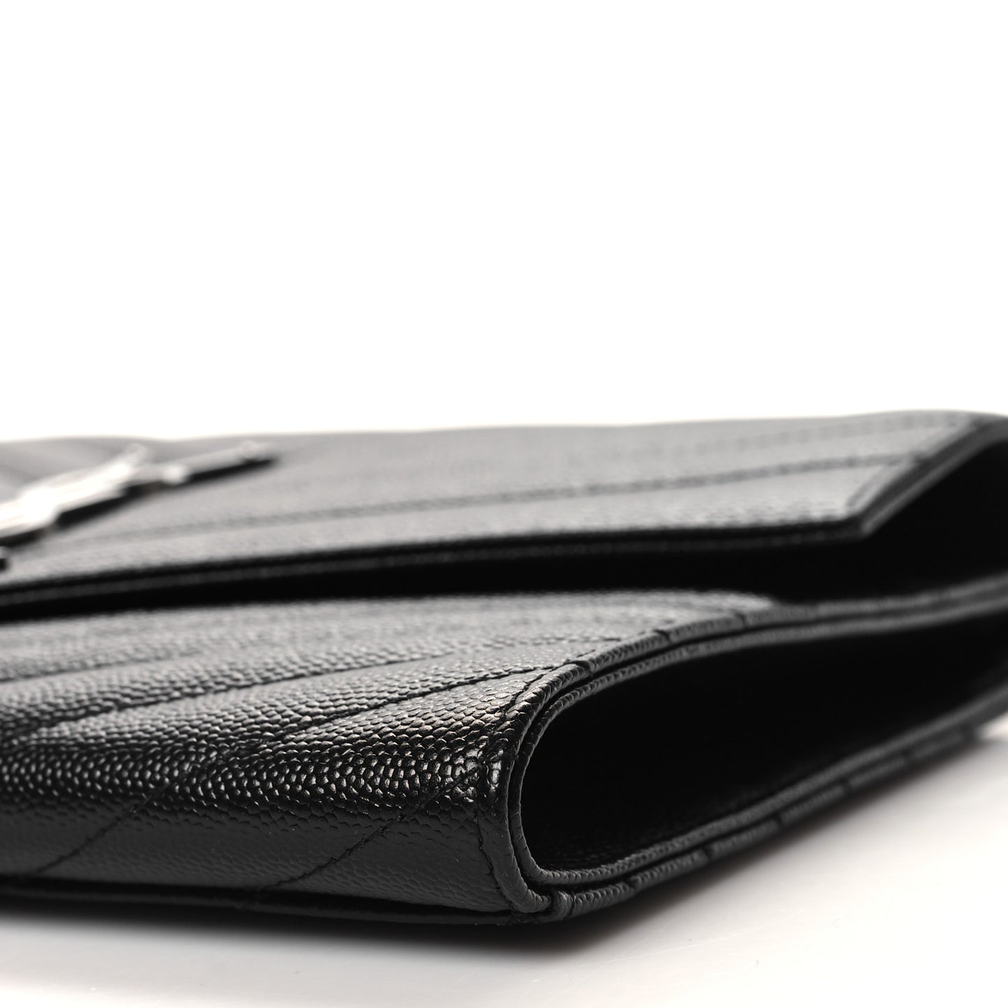 This is an authentic SAINT LAURENT Grain De Poudre Matelasse Chevron Monogram Envelope Clutch in Black. This elegant clutch is crafted of finely pebbled chevron quilted leather in black. The bag features a gold classic YSL emblem on the flap and a removable wristlet strap. This opens to a black fabric interior with a patch pocket.Follow this item for alerts. Saint Laurent is a registered trademark of Saint Laurent. FASHIONPHILE is not affiliated with Saint Laurent.