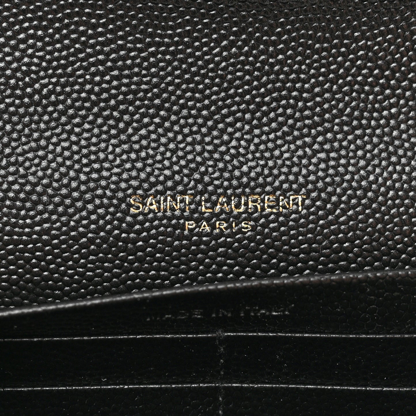 This is an authentic SAINT LAURENT Grain De Poudre Matelasse Chevron Monogram Flap Wallet in Black. This wallet is crafted of textured chevron-quilted leather in black with a classic gold YSL logo on the front. The wallet opens to a partitioned black leather interior with card slots, patch pockets and a zipper compartment.Follow this item for alerts. Saint Laurent is a registered trademark of Saint Laurent. FASHIONPHILE is not affiliated with Saint Laurent.