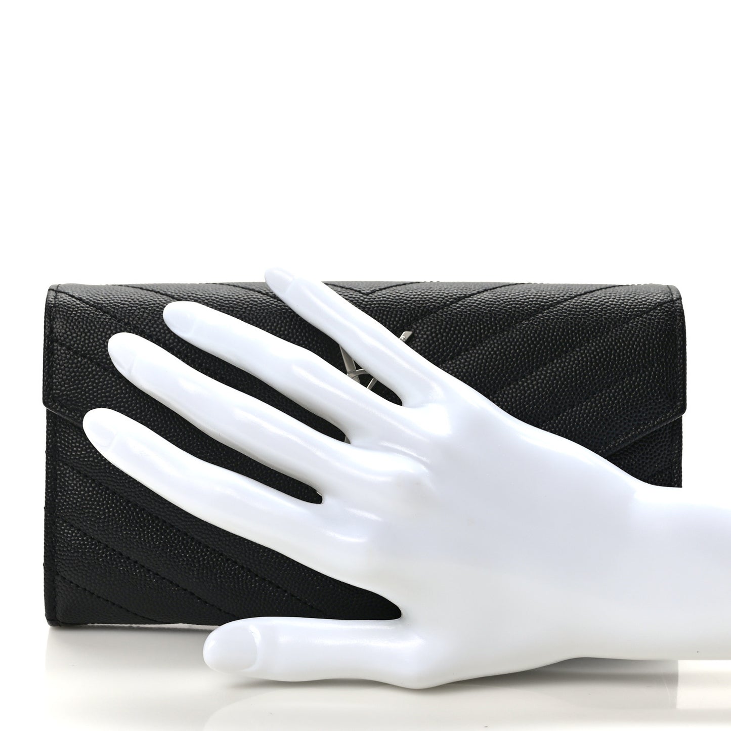 Saint Laurent/ Accessories/ Wallets /Saint Laurent Grain De Poudre Matelasse Chevron Monogram Flap Wallet Deep Marine