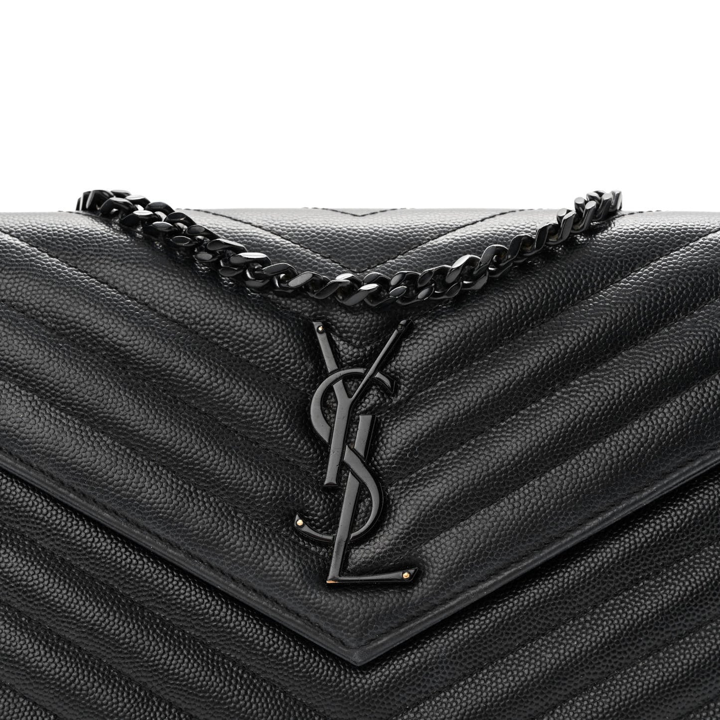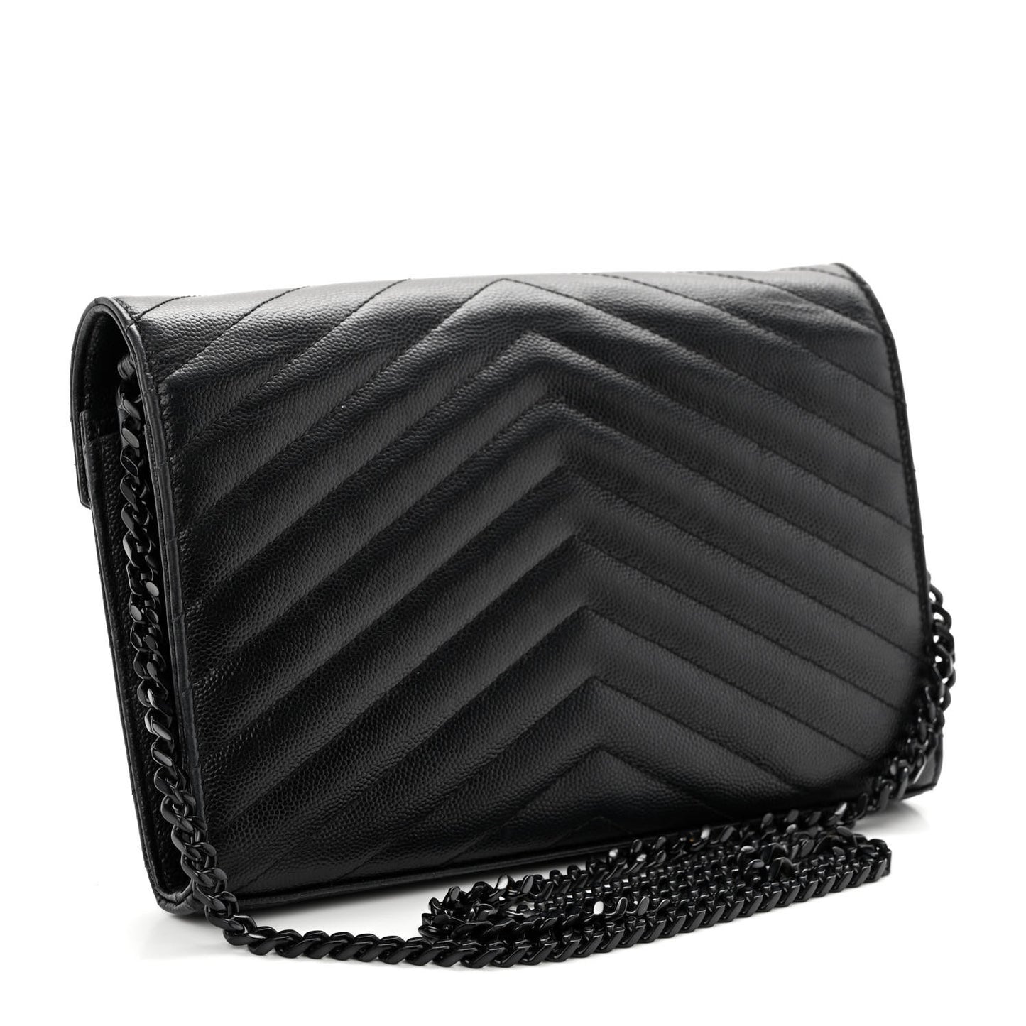 Saint Laurent/ Bags/ Wallet Style /Saint Laurent Grain De Poudre Matelasse Chevron Monogram Monochrome Chain Wallet Black