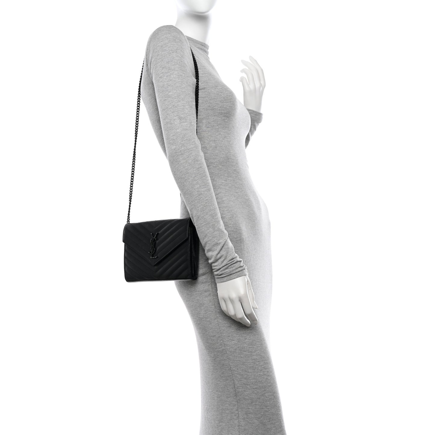 Saint Laurent/ Bags/ Wallet Style /Saint Laurent Grain De Poudre Matelasse Chevron Monogram Monochrome Chain Wallet Black